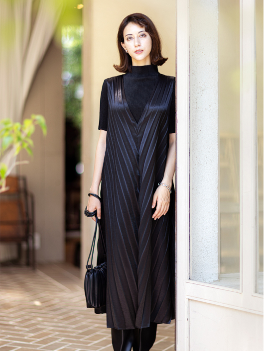 Vネック サテンプリーツ ドレス 身長:167cm お気に入り登録数:1人 お気に入りに追加する 着用アイテム Vネック サテンプリーツ ドレス 18,700 シャトルプリーツ ボトルネックプルオーバー / 半袖 14,300 プリーツ巾着ショルダーミニバッグ 8,800 上記アイテム以外は、ONLINE SHOPでのお取り扱い予定はございません。 着用タグからコーディネートを探す 通勤・オフィスカジュアル会食・観劇・鑑賞デイリーカジュアル旅行・バカンスエアポートファッションクルーズスタイル