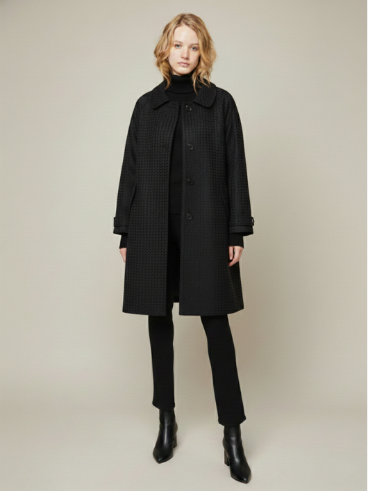 素材は程よいハリ感にたおやかさが調和するダブルジャガードを使用していて、軽さもあり今の気分にぴったり。オンにもオフにも気回せるステンカラーデザインにラグランスリーブでリラクシーな着心地をプラス。どんなボトムスでも相性抜群の丈感もポイントのひとつ。暖かくなってきたら、ボタンは留めずにさらっと大人っぽく着こなすのがおすすめです。