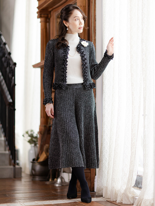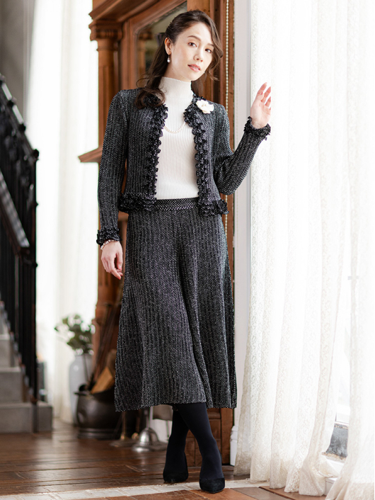 定番カラーはもちろん、柄がお揃いになるジャケット(品番:431-455LC-99)やシャトルのトップスと合わせてツーピース / スリーピーススーツとしての着用が可能です。ビジネスからセレモニー / パーティフォーマルまで幅広い用途に活躍するアイテムです。