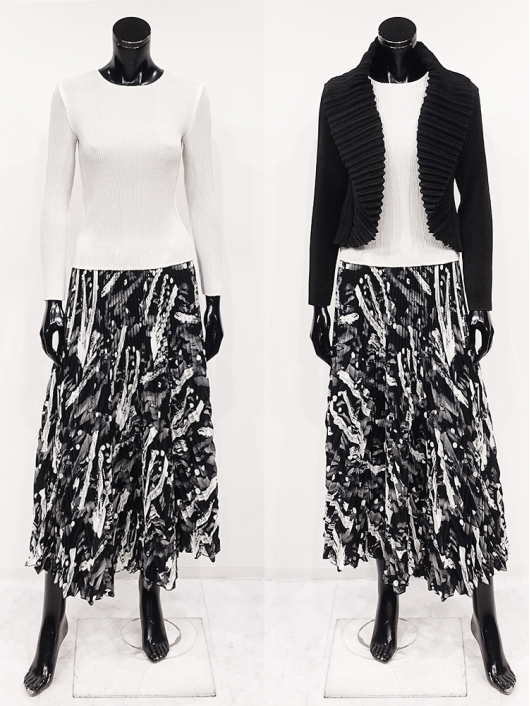 シャトル フェイドアウトプリーツ ショールカラージャケット ¥16,500 900ポイント還元 お気に入り登録数:64人 01 | 18 ツイード柄(黒白系) ズーム ※選択中のカラーの商品情報が表示されます ブラック ブラック Free/3~31号 ○ カートに入れる 商品説明 立体的で美しいドラマティックなフェイドアウトプリーツジャケット。女らしさが香る華やかなショールカラーを大胆に彩る 意匠を凝らしたプリーツテクニックでシンプルなシルエットでもクチュール感ただよう1着に。光と影が織り成す繊細な陰影と立体感を湛えたプリーツの表情が素敵です。一方、前身頃のショルダー付近と袖、後ろ見頃は華奢さを意識させてスレンダーな印象の美しいシルエットに仕上げています。 商品詳細 プリーツの種類:シャトルフェイドアウトプリーツ対応サイズ:Free/3~31号重さ:177g素材:ポリエステル100%取り扱い:ドライ商品品番:431-422-40-09 商品の特徴 サイズガイドはこちら 【サイズ:平置き寸】 バスト80 肩幅37 袖丈55 着丈51 ※単位:cm 【サイズの詳細:着用寸】 バスト:74~124cm(対応サイズ)・肩幅:40cm・袖丈:58cm・着丈:52cm 【素材・加工】 ・シャトルフェイドアウトプリーツ製品(縦横斜め全方向に伸縮性があります) ・前後見頃に施した2度掛けシャトルプリーツが前襟ぐり~前端、後ろ裾に向かってフェイドアウトプリーツへと変化していくドラマティックなプリーツデザインです。 【商品の仕様】 ・ ショール衿デザイン ・セットインスリーブ ・フロントオープンタイプ(留め具なし) ・前見頃ラウンドヘムライン ・ショート丈(ヒップが少し隠れるくらいの丈感です) ◆Coordinate ・シンプルなトップスとエスカルゴスカートのエレガントなスタイルにあわせれば、ちょっとしたお出かけや「特別な日」の華やぎスタイルとして誰よりも素敵に! ・1枚で着映える定番ワンピースとも相性が良く、デイリー使いはもちろん、オフィスでさりげなく華やぐスタイリングが叶います。 ・その他にも、相性の良いアイテムを揃えていますので多彩なクロスコーディネートを自由にお楽しみ頂けます。 *セットアップ対応商品は在庫切れの場合がございます。 【商品に対するご注意】 ※着用・お取り扱いの際は、商品についている品質表示とアテンションタグを必ずご確認下さい。 ※ゆとり感には個人差があります。サイズ表を確認の上、ご購入の目安としてご利用ください。 ※プリーツの形状や生地 / 仕様・デザインにより、着用感や実際のサイズ表に若干の誤差が生じる場合がございます。予めご了承ください。 ※単品の画像がない洋服/小物はスタイリングアイテムです。セットではないので、予めご了承下さい。 ※モデル撮影画像は、光の当たり具合で色味が違って見える場合があります。商品の色味はトルソー撮影の画像をご参照ください。 ※メーカー希望小売価格:¥16,500(税込) このアイテムを使ったコーディネート 身長:165cm 身長:165cm 身長:165cm