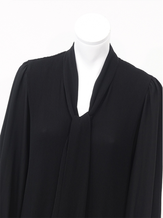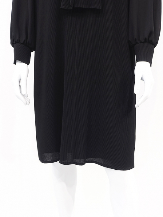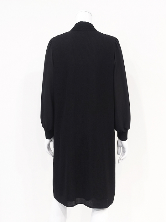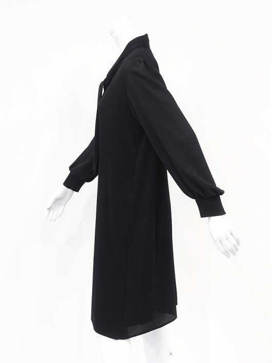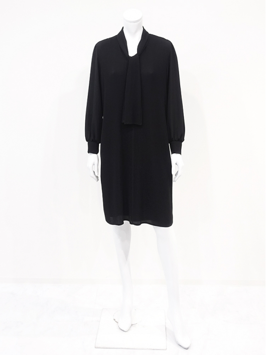 胸元にあしらったボウタイアクセントが大人に良く似合うきちんと感を備えたスマートな印象を演出してくれます。体のラインを拾いにくいストンと落ちるゆったりしたシルエットなのでラクに脱着できます。