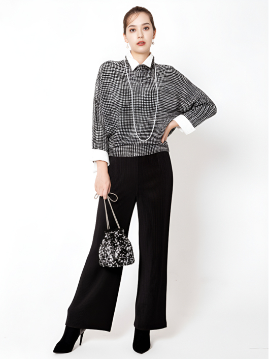 シャトル ドルマンチュニックワンピース / 2WAY ¥16,500 450ポイント還元 お気に入り登録数:0人 01 | 18 ツイード柄(黒白系) ズーム ※選択中のカラーの商品情報が表示されます ブロックチェック柄(黒白系) ブロックチェック柄(黒白系) Free/3~31号 △ カートに入れる 商品説明 モダンな印象を与えてくれるブロックチェック柄のモノトーンプリントで大人っぽく着映えるドルマンチュニックワンピース。 商品詳細 プリーツの種類:シャトルプリーツ対応サイズ:Free/3~31号重さ:208g生産国:中国素材:ポリエステル100%取り扱い:ドライ商品品番:432-513BC-40-59 商品の特徴 サイズガイドはこちら 【サイズ:平置き寸】 バストー 裄丈64 着丈58 総丈69 ※単位:cm 【サイズの詳細:着用寸】 バスト74~124cm(対応サイズ)・裄丈69cm・着丈58cm・総丈69cm 【商品の仕様】 ・横掛けシャトルプリーツ製品 (縦横斜め全方向に伸縮性があります) ・ブロックチェック柄プリント(黒白系) ・フレンチスタンドネック ・ドルマンスリーブシルエット ・すとんとかぶれば短すぎない膝上ワンピースとして着こなせる安心の丈感 ・お好みの丈感にブラウジングしてトップススタイルも楽しめます。 ・相性の良いパンツ(品番:401-303)とのレイヤードスタイルもステキです。 ・デイリーからドレスアップスタイルまで1枚で対応できる着回しの効く2WAYアイテムなので旅行や急な出張にもおすすめです。 【商品に対するご注意】 ※着用・お取り扱いの際は、商品についている品質表示とアテンションタグを必ずご確認下さい。 ※ゆとり感には個人差があります。サイズ表を確認の上、ご購入の目安としてご利用ください。 ※素材の特性や仕様 / デザインにより、着用感や実際のサイズ表に若干の誤差が生じる場合がございます。予めご了承ください。 ※単品の画像がない洋服 / 小物はスタイリングアイテムです。セットではないので、予めご了承下さい。 ※モデル撮影画像は、光の当たり具合で色味が違って見える場合があります。商品の色味はトルソー撮影の画像をご参照ください。 ※メーカー希望小売価格:¥16,500(税込) このアイテムを使ったコーディネート 身長:171cm
