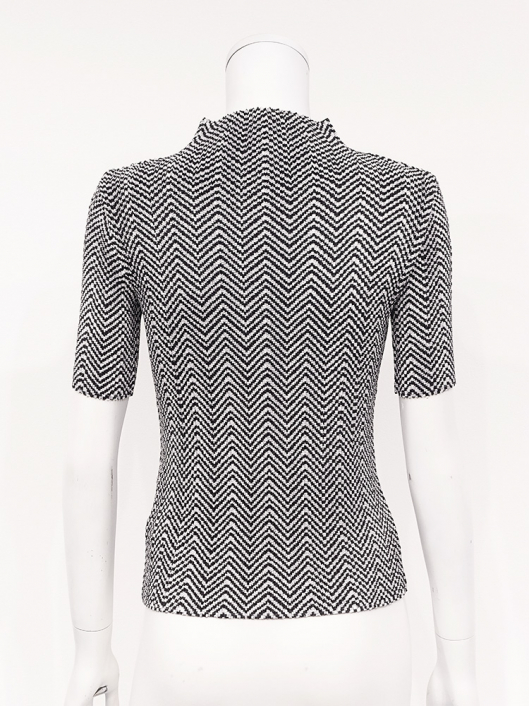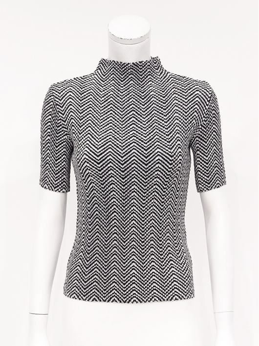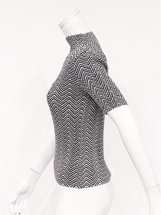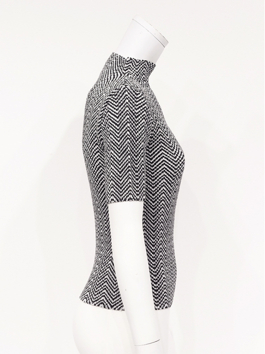 ユーティリティな「きれいめトップス」としても優秀!程よいフィット感でスタイルをキレイに見せてくれる半袖のボトルネックプルオーバー。着こなしに映える白黒のヘリンボーン柄は久しぶりのお届けになります。