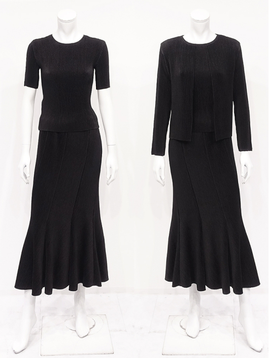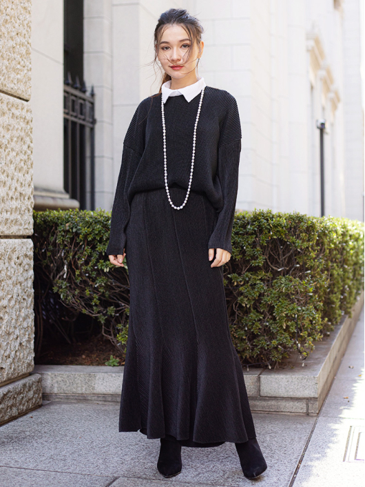 シャトルプリーツ エスカルゴスカート ¥16,500 450ポイント還元 お気に入り登録数:1人 01 | 18 ツイード柄(黒白系) ズーム ※選択中のカラーの商品情報が表示されます ブラック ブラック Free/3~31号 ○ カートに入れる 商品説明 再販の声を多数いただいた人気色の完売商品「ブラック」再入荷いたしました!今季も数量限定入荷のためお早めにどうぞ。 巻貝のような切り替えのあるシャトルのエスカルゴスカート。複数のパーツをつなぎ合わせることで、その名のとおり巻貝のような美しいシルエットに仕上げています。ボリュームのある見た目ですが穿くととても軽く、ストレスなく着用していただけます。動きに合わせてきれいに揺れてくれるので、女性らしく美しい印象を与えてくれます。 ◆お揃いになるノーカラーやドレープカラーの定番ジャケットとセットでそろえればフォーマルな場にも映える「きちんと感」を備えた大人スタイルを演出できる素敵な着こなしが完成します。学校行事や謝恩会・同窓会・結婚式・披露宴・二次会のお呼ばれなど「晴れの日」スタイルにも最適です。 商品詳細 プリーツの種類:シャトルプリーツ対応サイズ:Free/3~31号重さ:276g生産国:中国素材:ポリエステル100%取り扱い:ドライ商品品番:442-217-40-09 商品の特徴 サイズガイドはこちら 【サイズ:平置き寸】 ウエスト65 ヒップ84 スカート丈81 ※単位:cm 【サイズの詳細:着用寸】 ウエスト:61~112cm(対応サイズ)・ヒップ:87~121cm・スカート丈:85cm 【商品の特徴】 ・シャトルプリーツ製品 (縦横斜め全方向に伸縮性があります) ・エスカルゴデザイン (複数のパーツをつなぎ合わせることで、その名のとおり巻貝のような美しい見た目に仕上げています) ・ウエスト総ゴム仕様 ・ゆらりと揺れる裾フレアシルエット ・ロング丈 ◆Coordinate ・きちんと感のあるダブルのピークドジャケットやシングルのテーラードジャケットとあわせれば通勤カジュアルに最適。 ・ちょっとしたお出かけや「特別な日」には、華やぎジャケットとあわせて、アクセサリーをプラスにして大人のセレモニースタイルとして誰よりも素敵に! ・その他にも、相性の良いアイテムを揃えていますので多彩なクロスコーディネートを自由にお楽しみ頂けます。 *セットアップ対応商品は在庫切れの場合がございます。 【商品に対するご注意】 ※着用・お取り扱いの際は、商品についている品質表示とアテンションタグを必ずご確認下さい。 ※ゆとり感には個人差があります。サイズ表を確認の上、ご購入の目安としてご利用ください。 ※プリーツの形状や生地 / 仕様・デザインにより、着用感や実際のサイズ表に若干の誤差が生じる場合がございます。予めご了承ください。 ※単品の画像がない洋服 / 小物はスタイリングアイテムです。セットではないので、予めご了承下さい。 ※モデル撮影画像は、光の当たり具合で色味が違って見える場合があります。商品の色味はトルソー撮影の画像をご参照ください。 ※メーカー希望小売価格:¥16,500(税込)