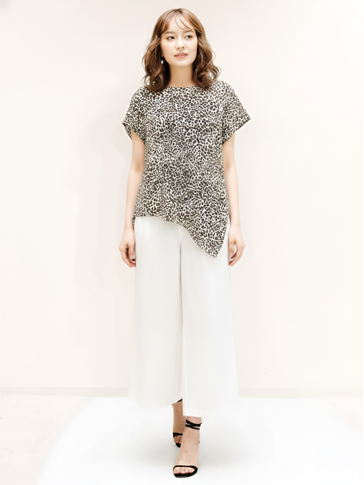 一気にこなれ感を演出してくれるヒョウ柄がスタイルに映える技ありプルオーバートップス。