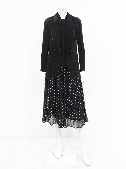 マジョリカプリーツ シフォンワイドフレアクロップドパンツ / 股下45cm ¥16,500 450ポイント還元 お気に入り登録数:5人 01 | 18 ツイード柄(黒白系) ズーム ※選択中のカラーの商品情報が表示されます かすれシャボン玉柄(黒白系) かすれシャボン玉柄(黒白系) 40 ○ カートに入れる 商品説明 商品詳細 プリーツの種類:マジョリカプリーツ対応サイズ:Free/3~21号重さ:269g生産国:中国素材:ポリエステル100% 取り扱い:ドライ商品品番:451-353PRT-40-60 商品の特徴 サイズガイドはこちら 【サイズ:平置き寸】 ウエスト64 ヒップー 股上32 股下45 わたり幅ー 裾幅ー レングス脇丈78 / 総丈78 ※単位:cm 【サイズの詳細:着用寸】 ウエスト:61~92cm(対応サイズ)・ヒップ:91~111cm・股上:32cm・股下:45cm・わたり:ー・裾幅:ー・レングス:78cm 【素材・加工】 ・マジョリカプリーツ製品 ・シフォンジョーゼット素材(透け感があります ) ・かすれシャボン玉柄プリント(黒白系) 【商品の仕様】 ・ウエスト総ゴム仕様(ゴム上がり65cm) ・ワイドフレアシルエット ・ウエスト部分から腰回りにかけて施したプリーツが裾に向かって消えていくようなフェードアウトプリーツ仕様です ・クロップド丈(股下の長さは、身長によって着丈感が変わってきます。低身長の方であれば、股下45cmのパンツは、アンクル丈(くるぶしが少し見える丈)として着用できます) ◆Coordinate ・お揃いになるブラウス(品番:451-165PRT)とのセットアップもステキです。 ・その他にも、相性の良いアイテムを揃えていますので多彩なクロスコーディネートを自由にお楽しみ頂けます。 *セットアップ対応商品は在庫切れの場合がございます。 【商品に対するご注意】 ※着用・お取り扱いの際は、商品についている品質表示とアテンションタグを必ずご確認下さい。 ※ゆとり感には個人差があります。サイズ表を確認の上、ご購入の目安としてご利用ください。 ※プリーツの形状や生地 / 仕様・デザインにより、着用感や実際のサイズ表に若干の誤差が生じる場合がございます。予めご了承ください。 ※単品の画像がない洋服 / 小物はスタイリングアイテムです。セットではないので、予めご了承下さい。 ※モデル撮影画像は、光の当たり具合で色味が違って見える場合があります。商品の色味はトルソー撮影の画像をご参照ください。 ※メーカー希望小売価格:¥16,500(税込)