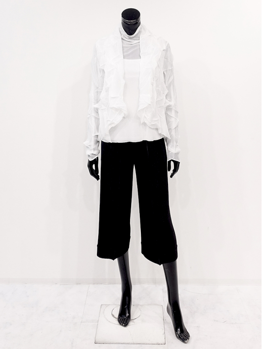 ・ランダムなカットが入ったヘムラインはすべてプリーツ形状を活かしたイレギュラー仕様