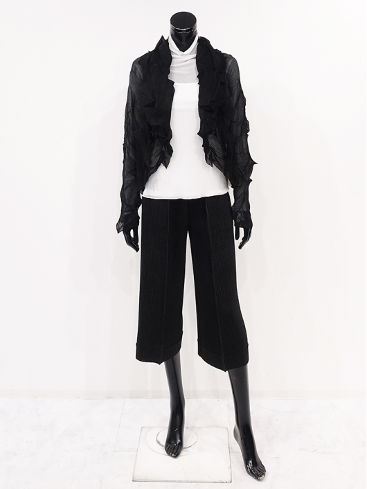透け感ニュアンスをモードな雰囲気にまとめた立体的で美しいドラマティックなプリーツジャケット。