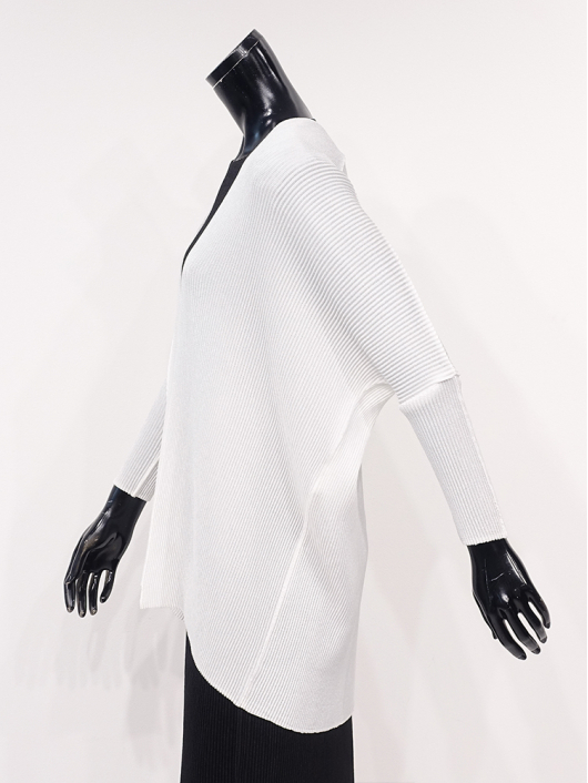 コクーンシルエットで着こなしを優雅に見せながらも上手に体型を隠してくれる力は頼もしいばかり。長すぎず短すぎない丈もこだわりポイント。さらっと羽織るだけで大人の女性をきれいに見せてくれると思います。細身ベルトでウエストマークしても素敵です。