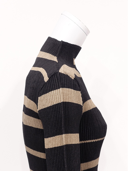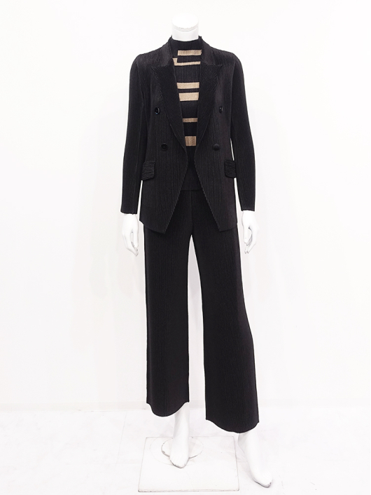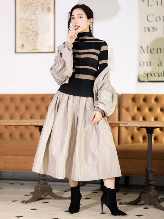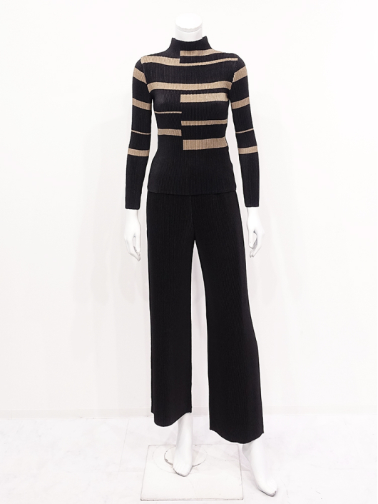 シャトルプリーツ ボトルネックプルオーバー / 長袖 ¥14,300 390ポイント還元 お気に入り登録数:3人 01 | 18 ツイード柄(黒白系) ズーム ※選択中のカラーの商品情報が表示されます ランダムボーダー柄(キャメルブラック系) ランダムボーダー柄(キャメルブラック系) Free/3~31号 ○ カートに入れる 商品説明 ユーティリティな「きれいめトップス」としても優秀!着こなしのアクセントになる新柄が今秋新登場!シンプルなシルエットでも主役級。頼れる存在感は抜群です。 街の視線を奪うグラフィカルなランダムボーダーがスタイリングを格上げ。ブラックに映えるキャメルラインの普遍的なカラーコントラストの深みのある落ち着いたトーンが大人のカジュアル感をスタイリッシュに演出してくれます。普段使いにも気軽に取り入れやすく、オフィスでも浮かないきちんと感を備えたボトルネックプルオーバー。真冬はアウターの中に着るのはもちろん、肌寒さを感じ始める今秋や来春先はトップスとして、徐々に深まる季節の移ろいに合わせてブルゾンやお揃いになるジャケットを羽織ったり、ロングベストやジャンパースカートとのレイヤリングにと長く着用できるベーシックアイテムに仕上げています。 商品詳細 プリーツの種類:シャトルプリーツ対応サイズ:Free/3~31号重さ:149g生産国:中国素材:ポリエステル100%取り扱い:ドライ商品品番:452-122RB-40-63 商品の特徴 サイズガイドはこちら 【サイズ:平置き寸】 バスト62 肩幅30 袖丈53 着丈52 総丈57 ※単位:cm 【サイズの詳細:着用寸】 バスト:74~124cm(対応サイズ)・肩幅:38cm・袖丈:54cm・着丈:53cm・総丈:58cm 【商品の仕様】 ・シャトルプリーツ製品 (縦横斜め全方向に伸縮性があります) ・ランダムボーダー柄プリント(キャメルブラック系) ・ボトルネックライン ・セットインスリーブ ・長袖 ・程よいフィット感のコンパクトなシルエット ・ヒップが半分隠れるくらいの丈感 ◆Coordinate ・きちんと感のあるダブルのピークドジャケットやシングルのテーラードジャケットとパンツ/スカートのスーツアップにあわせれば通勤カジュアルに最適。 ・柄がお揃いになるブルゾンやボトムスとのセットアップスタイルもステキです。 ・その他にも、相性の良いアイテムを揃えていますので多彩なクロスコーディネートを自由にお楽しみ頂けます。 *セットアップ対応商品は在庫切れの場合がございます。 【商品に対するご注意】 ※着用・お取り扱いの際は、商品についている品質表示とアテンションタグを必ずご確認下さい。 ※ゆとり感には個人差があります。サイズ表を確認の上、ご購入の目安としてご利用ください。 ※素材の特性や仕様 / デザインにより、着用感や実際のサイズ表に若干の誤差が生じる場合がございます。予めご了承ください。 ※単品の画像がない洋服 / 小物はスタイリングアイテムです。セットではないので、予めご了承下さい。 ※モデル撮影画像は、光の当たり具合で色味が違って見える場合があります。商品の色味はトルソー撮影の画像をご参照ください。 ※メーカー希望小売価格:¥14,300(税込)