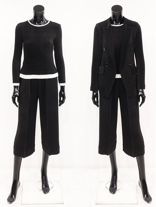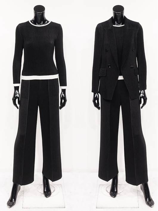 バイカラーライン シャトルプルオーバー / 長袖 ¥14,300 390ポイント還元 お気に入り登録数:3人 01 | 18 ツイード柄(黒白系) ズーム ※選択中のカラーの商品情報が表示されます ブラック×オフホワイト ブラック×オフホワイト Free/3~31号 ○ カートに入れる 商品説明 スポーティなニュアンスをスタイリッシュに表現したシャトルの長袖プルオーバー。クリーンな印象のモノトーンアクセントを効かせた配色ラインがいいスパイス! すっきり着られるシンプルなシルエットのネックラインと袖口、裾に配したバイカラーラインは、幅を変えてエッジの利いた変化を持たせて着映え力の高い仕上がりに。きれいめなパンツやデニムスタイルとの相性も抜群の丈感でロングベストとのレイヤリングやジャケットインにも◎ オフィス映えはもちろん、ちょっとお出かけするときも、通勤からデイリーカジュアルまで幅広く着こなせる1枚です。 商品詳細 プリーツの種類:シャトルプリーツ対応サイズ:Free/3~31号重さ:150g生産国:中国素材:ポリエステル100%取り扱い:ドライ商品品番:452-178-40-51 商品の特徴 サイズガイドはこちら 【サイズ:平置き寸】 バスト63 肩幅31 袖丈53 着丈51 ※単位:cm 【サイズの詳細:着用寸】 バスト:74~124cm(対応サイズ)・肩幅:38cm・袖丈:54cm・着丈:52cm 【商品の仕様】 ・シャトルプリーツ製品 (縦横斜め全方向に伸縮性があります) ・配色ラインデザイン(オフホワイト色) ・ラウンドネックライン ・セットインスリーブ ・長袖 ・ヒップにややかかるくらいの丈感 ◆Coordinate ・相性の良いアイテムを揃えていますので多彩なクロスコーディネートを自由にお楽しみ頂けます。 *セットアップ対応商品は在庫切れの場合がございます。 【商品に対するご注意】 ※着用・お取り扱いの際は、商品についている品質表示とアテンションタグを必ずご確認下さい。 ※ゆとり感には個人差があります。サイズ表を確認の上、ご購入の目安としてご利用ください。 ※プリーツの形状や生地 / 仕様・デザインにより、着用感や実際のサイズ表に若干の誤差が生じる場合がございます。予めご了承ください。 ※単品の画像がない洋服 / 小物はスタイリングアイテムです。セットではないので、予めご了承下さい。 ※モデル撮影画像は、光の当たり具合で色味が違って見える場合があります。商品の色味はトルソー撮影の画像をご参照ください。 ※メーカー希望小売価格:¥14,300(税込)
