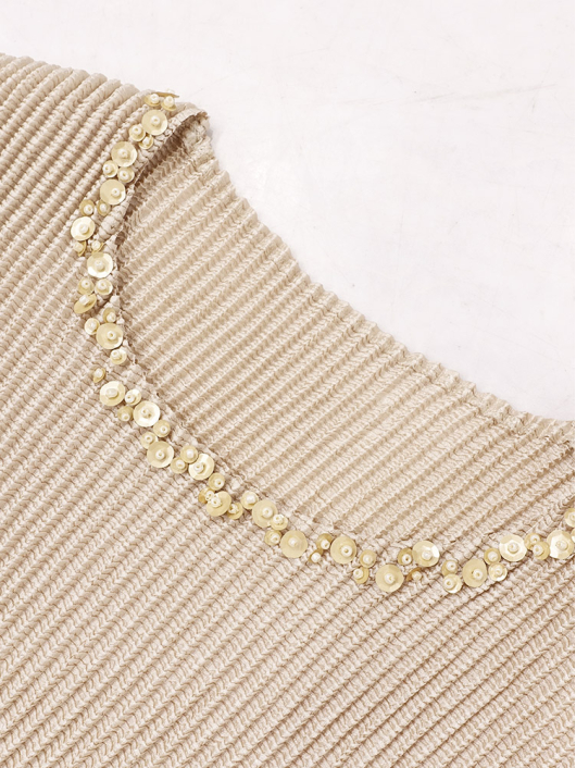 ・前襟ぐりビーズとスパンコールのイレギュラートリミング刺繍