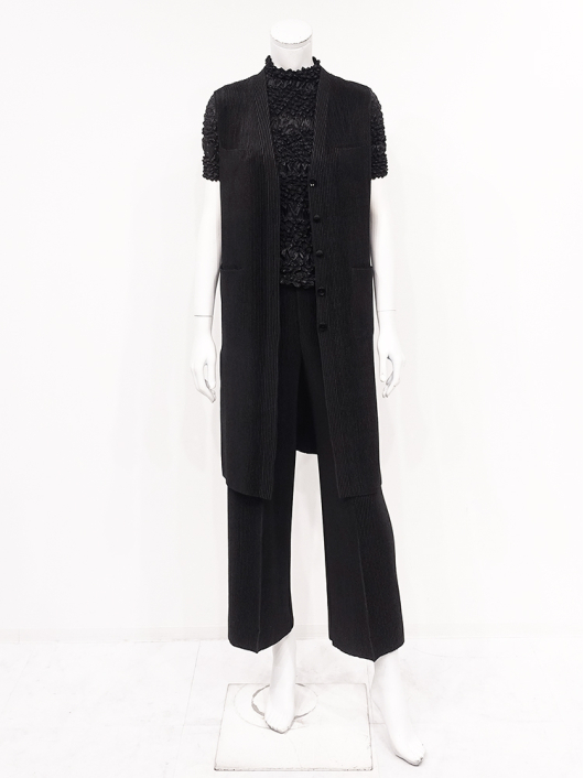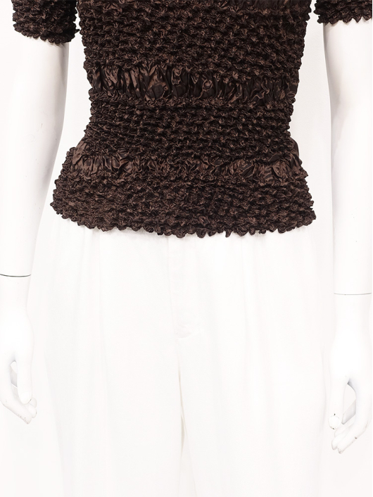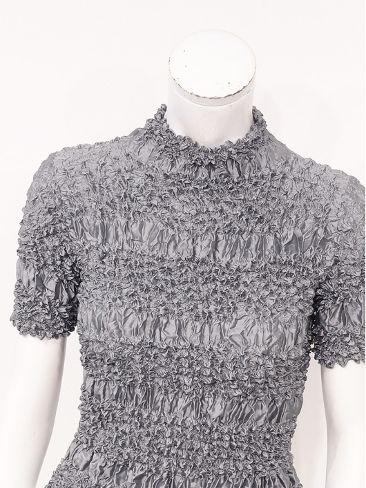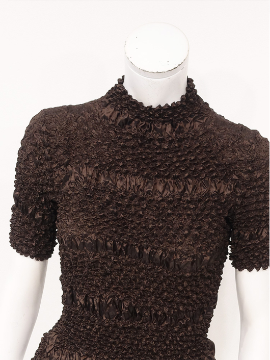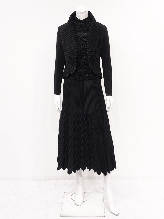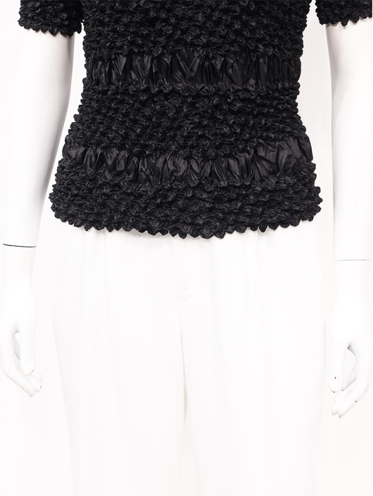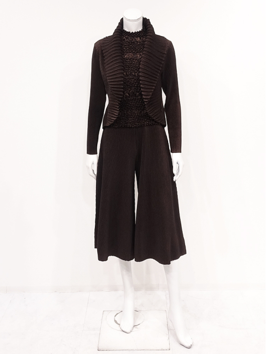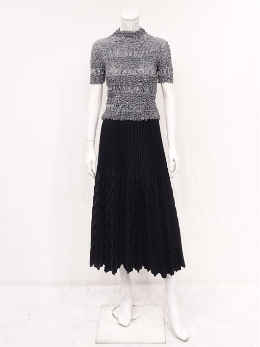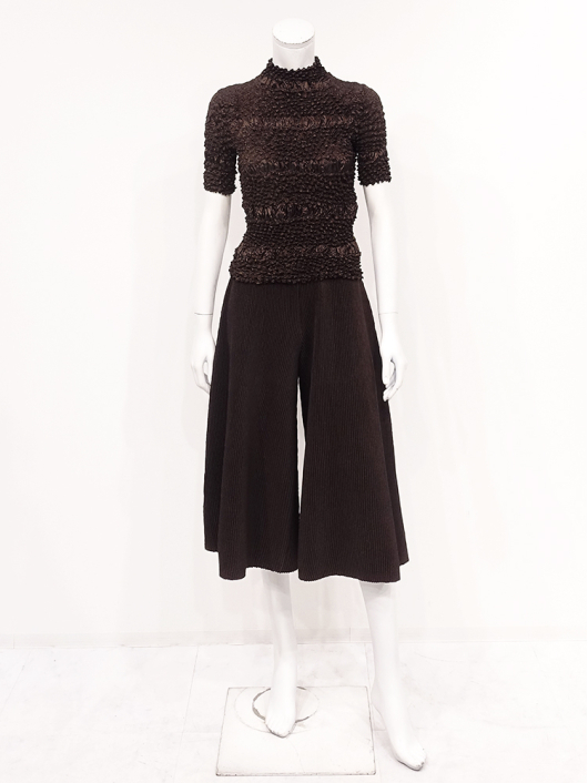 360°どこから見ても絞りの凹凸が映え、優しく体にフィットしてくれるシルエットに、すっきりとしたミニマルなモックネックやショート丈の腰回り。ボリューム感のあるスカートやワイドパンツとの相性も抜群です。シンプルなコーディネートに映えるトップスとしてはもちろん、ジャケットやロングベストなどのインナー使いにおすすめです。