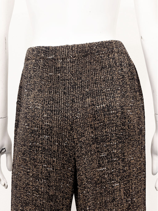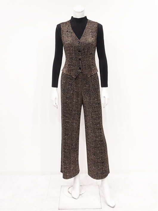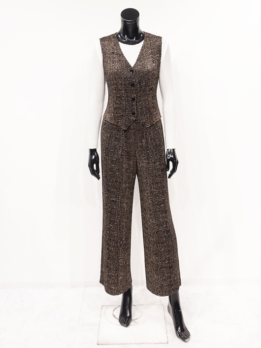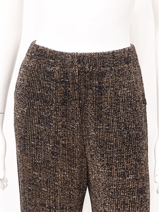 奥行きのある表情が魅力のネップツイードを表現したプリント素材を使用し、オフィス映えはもちろん、ちょっとお出かけするときも、きちんと見えするクラシックな雰囲気のストレートワイドパンツ。