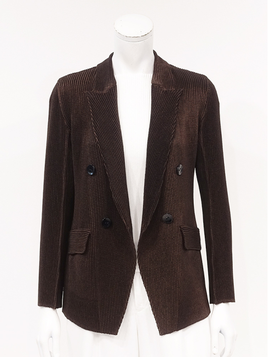 シャトルプリーツ ピークドラペル ダブルブレスト ジャケット ¥19,800 540ポイント還元 お気に入り登録数:9人 01 | 18 ツイード柄(黒白系) ズーム ※選択中のカラーの商品情報が表示されます シャンブレーブラウン キャメル シャンブレーブラウン Free/3~31号 △ カートに入れる キャメル Free/3~31号 ○ カートに入れる 商品説明 気取りなくさらりと羽織るだけでオフィス映えはもちろん、ちょっとお出かけするときも、きちんと見える「スタイリッシュな大人のジャケット」に新色ブラウンが新登場! トレンドのピークドラペルに、身幅に程良くゆとりを持たせたダブルブレストデザインと、メンズライクなルックスを持ちつつ高め位置でウエストをやや絞った女性らしいシルエットが魅力です。すっきりと端正な印象を演出してくれるロング丈で着こなしやすさはもちろん、シルエットの邪魔にならないよう左右にフラップポケットを配して、かっちりしすぎない大人のモードスタイルに。トップスの上にさらりと羽織るだけで、ラフに前を開けても 締めても 颯爽とした着こなしがサマになります。 ◆お揃いになるパンツを合わせて凜とした佇まいでスタイリッシュに着こなせるスーツスタイルはもちろん、ロングタイトスカートを合わせて王道をいくクラシカルなレディスタイルやカジュアルなデニムスタイルにもよく似合うピークドジャケットは、ボトムス次第でマニッシュにもエレガントにも演出できる着映え力の高い仕上がり。インナーやアクセサリーを華やかにして大切な日に華を添える大人の「晴れの日」スタイルとしてもきちんと着回して使える上質なベーシックデザインが素敵ですね。 商品詳細 プリーツの種類:シャトルプリーツ対応サイズ:Free/3~31号重さ:308g生産国:中国素材:ポリエステル100%取り扱い:ドライ商品品番:452-455-40-04 商品の特徴 サイズガイドはこちら 【サイズ:平置き寸】 バスト88 肩幅38 袖丈55 着丈62 ※単位:cm 【サイズの詳細:着用寸】 バスト:74~124cm(対応サイズ)・肩幅:39cm・袖丈:57cm・着丈:64cm 【商品の仕様】 ・シャトルプリーツ製品 (縦横斜め全方向に伸縮性があります) ・ピークドラペルカラー ・前ボタン、内掛けボタン開き ・ダブルブレスト ・セットインスリーブ ・前2個ポケット付き ・ボックスシルエット ・前下がり裾仕様 ・長め丈(ヒップが半分隠れるくらいの丈感) ・背裏仕立て ◆セットアップ対応◆ お揃いになるパンツやトップスと合わせてツーピース / スリーピーススーツとしての着用が可能です。ビジネスからセレモニー / パーティフォーマルまで幅広い用途に活躍するアイテムです。 ◆Coordinate ・ちょっとしたお出かけにはシンプルなトップスと裾にアクセントを効かせたアコーディオンプリーツスカートと合わせて軽やかに。 ・お揃いになるワンピースとも相性が良く、デイリー使いはもちろん、オフィスでさりげなく華やぐスタイリングが叶います。 ・その他にも、相性の良いアイテムを揃えていますので多彩なクロスコーディネートを自由にお楽しみ頂けます。 *セットアップ対応商品は在庫切れの場合がございます。。 【商品に対するご注意】 ※着用・お取り扱いの際は、商品についている品質表示とアテンションタグを必ずご確認下さい。 ※ゆとり感には個人差があります。サイズ表を確認の上、ご購入の目安としてご利用ください。 ※プリーツの形状や生地 / 仕様・デザインにより、着用感や実際のサイズ表に若干の誤差が生じる場合がございます。予めご了承ください。 ※単品の画像がない洋服/小物はスタイリングアイテムです。セットではないので、予めご了承下さい。 ※モデル撮影画像は、光の当たり具合で色味が違って見える場合があります。商品の色味はトルソー撮影の画像をご参照ください。 ※メーカー希望小売価格:¥19,800(税込) 商品説明 気取りなくさらりと羽織るだけでオフィス映えはもちろん、ちょっとお出かけするときも、きちんと見える「スタイリッシュな大人のジャケット」がシャトルプリーツに新登場! トレンドのピークドラペルに、身幅に程良くゆとりを持たせたダブルブレストデザインと、メンズライクなルックスを持ちつつ高め位置でウエストをやや絞った女性らしいシルエットが魅力です。すっきりと端正な印象を演出してくれるロング丈で着こなしやすさはもちろん、シルエットの邪魔にならないよう左右にフラップポケットを配して、かっちりしすぎない大人のモードスタイルに。トップスの上にさらりと羽織るだけで、ラフに前を開けても 締めても 颯爽とした着こなしがサマになります。 ◆お揃いになるパンツを合わせて凜とした佇まいでスタイリッシュに着こなせるスーツスタイルはもちろん、ロングタイトスカートを合わせて王道をいくクラシカルなレディスタイルやカジュアルなデニムスタイルにもよく似合うピークドジャケットは、ボトムス次第でマニッシュにもエレガントにも演出できる着映え力の高い仕上がり。イン