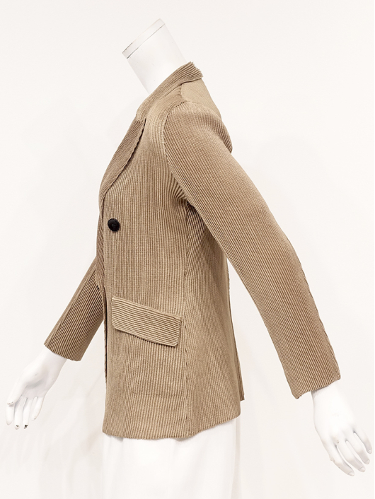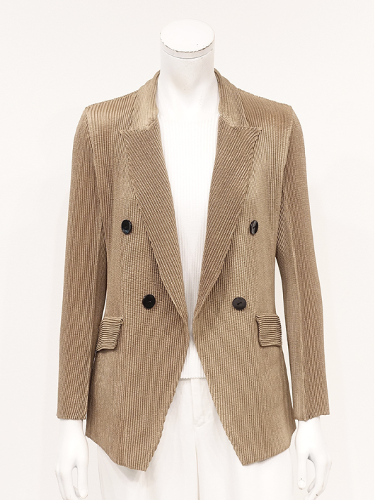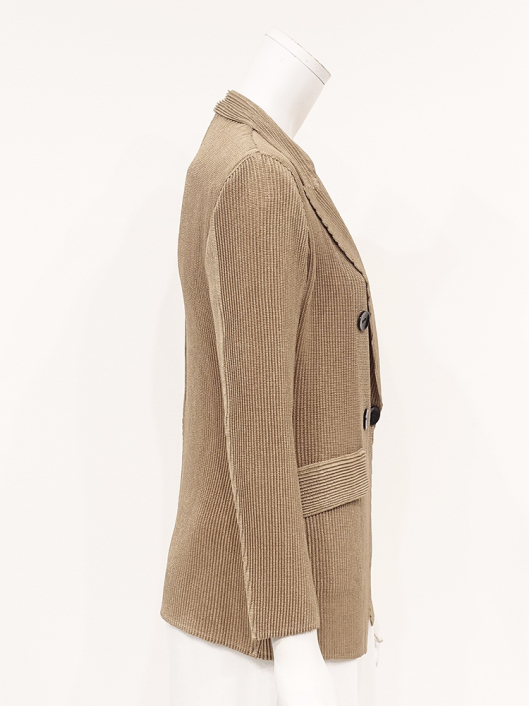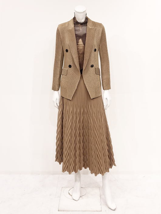 シャトルプリーツ ピークドラペル ダブルブレスト ジャケット ¥19,800 540ポイント還元 お気に入り登録数:0人 01 | 18 ツイード柄(黒白系) ズーム ※選択中のカラーの商品情報が表示されます キャメル キャメル Free/3~31号 ○ カートに入れる 商品説明 気取りなくさらりと羽織るだけでオフィス映えはもちろん、ちょっとお出かけするときも、きちんと見える「スタイリッシュな大人のジャケット」がシャトルプリーツに新登場! トレンドのピークドラペルに、身幅に程良くゆとりを持たせたダブルブレストデザインと、メンズライクなルックスを持ちつつ高め位置でウエストをやや絞った女性らしいシルエットが魅力です。すっきりと端正な印象を演出してくれるロング丈で着こなしやすさはもちろん、シルエットの邪魔にならないよう左右にフラップポケットを配して、かっちりしすぎない大人のモードスタイルに。トップスの上にさらりと羽織るだけで、ラフに前を開けても 締めても 颯爽とした着こなしがサマになります。 ◆お揃いになるパンツを合わせて凜とした佇まいでスタイリッシュに着こなせるスーツスタイルはもちろん、ロングタイトスカートを合わせて王道をいくクラシカルなレディスタイルやカジュアルなデニムスタイルにもよく似合うピークドジャケットは、ボトムス次第でマニッシュにもエレガントにも演出できる着映え力の高い仕上がり。インナーやアクセサリーを華やかにして大切な日に華を添える大人の「晴れの日」スタイルとしてもきちんと着回して使える上質なベーシックデザインが素敵ですね。 商品詳細 プリーツの種類:シャトルプリーツ対応サイズ:Free/3~31号重さ:308g生産国:中国素材:ポリエステル100%取り扱い:ドライ商品品番:452-455-40-03 商品の特徴 サイズガイドはこちら 【サイズ:平置き寸】 バスト88 肩幅38 袖丈55 着丈62 ※単位:cm 【サイズの詳細:着用寸】 バスト:74~124cm(対応サイズ)・肩幅:39cm・袖丈:57cm・着丈:64cm 【商品の仕様】 ・シャトルプリーツ製品 (縦横斜め全方向に伸縮性があります) ・ピークドラペルカラー ・前ボタン、内掛けボタン開き ・ダブルブレスト ・セットインスリーブ ・前2個ポケット付き ・ボックスシルエット ・前下がり裾仕様 ・長め丈(ヒップが半分隠れるくらいの丈感) ・背裏仕立て ◆セットアップ対応◆ プリーツ素材がお揃いになる別売りのパンツやスカート、トップスと合わせてツーピース / スリーピーススーツとしての着用が可能です。ビジネスからセレモニー / パーティフォーマルまで幅広い用途に活躍するアイテムです。 ・その他にも、相性の良いアイテムを揃えていますので多彩なクロスコーディネートを自由にお楽しみ頂けます。 *セットアップ対応商品は在庫切れの場合がございます。 【商品に対するご注意】 ※着用・お取り扱いの際は、商品についている品質表示とアテンションタグを必ずご確認下さい。 ※ゆとり感には個人差があります。サイズ表を確認の上、ご購入の目安としてご利用ください。 ※プリーツの形状や生地 / 仕様・デザインにより、着用感や実際のサイズ表に若干の誤差が生じる場合がございます。予めご了承ください。 ※単品の画像がない洋服/小物はスタイリングアイテムです。セットではないので、予めご了承下さい。 ※モデル撮影画像は、光の当たり具合で色味が違って見える場合があります。商品の色味はトルソー撮影の画像をご参照ください。 ※メーカー希望小売価格:¥19,800(税込)