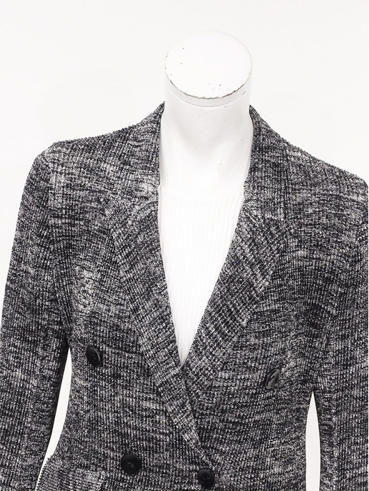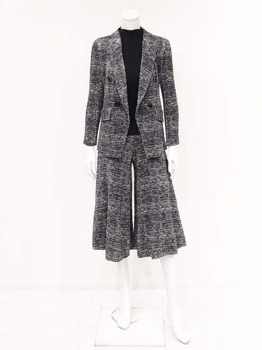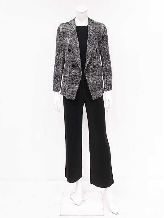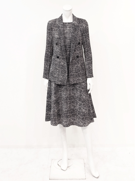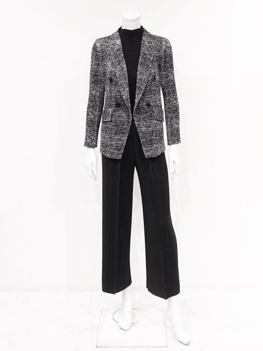 シャトルプリーツ ピークドラペル ダブルブレスト ジャケット ¥19,800 1080ポイント還元 お気に入り登録数:0人 01 | 18 ツイード柄(黒白系) ズーム ※選択中のカラーの商品情報が表示されます 杢調ツイード柄(黒白系) 杢調ツイード柄(黒白系) Free/3~31号 ○ カートに入れる 商品説明 気取りなくさらりと羽織るだけでオフィス映えはもちろん、ちょっとお出かけするときも、きちんと見える「スタイリッシュな大人のジャケット」がシャトルプリーツに新登場! トレンドのピークドラペルに、身幅に程良くゆとりを持たせたダブルブレストデザインと、メンズライクなルックスを持ちつつ高め位置でウエストをやや絞った女性らしいシルエットが魅力です。すっきりと端正な印象を演出してくれるロング丈で着こなしやすさはもちろん、シルエットの邪魔にならないよう左右にフラップポケットを配して、かっちりしすぎない大人のモードスタイルに。トップスの上にさらりと羽織るだけで、ラフに前を開けても 締めても 颯爽とした着こなしがサマになります。 ◆お揃いになるパンツを合わせて凜とした佇まいでスタイリッシュに着こなせるスーツスタイルはもちろん、ロングタイトスカートを合わせて王道をいくクラシカルなレディスタイルやカジュアルなデニムスタイルにもよく似合うピークドジャケットは、ボトムス次第でマニッシュにもエレガントにも演出できる着映え力の高い仕上がり。インナーやアクセサリーを華やかにして大切な日に華を添える大人の「晴れの日」スタイルとしてもきちんと着回して使える上質なベーシックデザインが素敵ですね。 商品詳細 プリーツの種類:シャトルプリーツ対応サイズ:Free/3~31号重さ:290g生産国:中国素材:ポリエステル100%取り扱い:ドライ商品品番:452-455TW-40-66 商品の特徴 サイズガイドはこちら 【サイズ:平置き寸】 バスト86 肩幅38 袖丈55 着丈62 ※単位:cm 【サイズの詳細:着用寸】 バスト:74~124cm(対応サイズ)・肩幅:39cm・袖丈:57cm・着丈:63cm 【商品の仕様】 ・シャトルプリーツ製品 (縦横斜め全方向に伸縮性があります) ・杢調ツイード柄プリント(黒白系) ・ピークドラペルカラー ・前ボタン、内掛けボタン開き ・ダブルブレスト ・セットインスリーブ ・前2個ポケット付き ・ボックスシルエット ・前下がり裾仕様 ・長め丈(ヒップが半分隠れるくらいの丈感) ・背裏仕立て ◆セットアップ対応◆ お揃いになるワンピースと合わせてアンサンブルスタイルやパンツやスカートと合わせてツーピース / スリーピーススーツとしての着用が可能です。ビジネスからセレモニー / パーティフォーマルまで幅広い用途に活躍するアイテムです。 ・その他にも、相性の良いアイテムを揃えていますので多彩なクロスコーディネートを自由にお楽しみ頂けます。 *セットアップ対応商品は在庫切れの場合がございます。 【商品に対するご注意】 ※着用・お取り扱いの際は、商品についている品質表示とアテンションタグを必ずご確認下さい。 ※ゆとり感には個人差があります。サイズ表を確認の上、ご購入の目安としてご利用ください。 ※プリーツの形状や生地 / 仕様・デザインにより、着用感や実際のサイズ表に若干の誤差が生じる場合がございます。予めご了承ください。 ※単品の画像がない洋服/小物はスタイリングアイテムです。セットではないので、予めご了承下さい。 ※モデル撮影画像は、光の当たり具合で色味が違って見える場合があります。商品の色味はトルソー撮影の画像をご参照ください。 ※メーカー希望小売価格:¥19,800(税込)