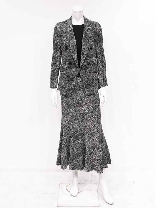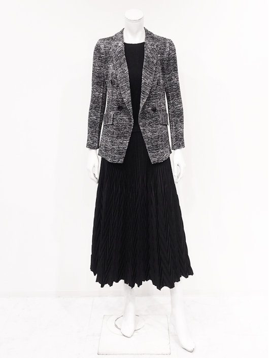 シャトルプリーツ ピークドラペル ダブルブレスト ジャケット ¥19,800 1080ポイント還元 お気に入り登録数:6人 01 | 18 ツイード柄(黒白系) ズーム ※選択中のカラーの商品情報が表示されます 杢調ツイード柄(黒白系) 杢調ツイード柄(黒白系) Free/3~31号 △ カートに入れる 商品説明 気取りなくさらりと羽織るだけでオフィス映えはもちろん、ちょっとお出かけするときも、きちんと見える「スタイリッシュな大人のジャケット」がシャトルプリーツに新登場! トレンドのピークドラペルに、身幅に程良くゆとりを持たせたダブルブレストデザインと、メンズライクなルックスを持ちつつ高め位置でウエストをやや絞った女性らしいシルエットが魅力です。すっきりと端正な印象を演出してくれるロング丈で着こなしやすさはもちろん、シルエットの邪魔にならないよう左右にフラップポケットを配して、かっちりしすぎない大人のモードスタイルに。トップスの上にさらりと羽織るだけで、ラフに前を開けても 締めても 颯爽とした着こなしがサマになります。 ◆着るだけで品よく仕上がるタイムレスなツイード柄のシャトルジャケットはボトムス次第でマニッシュにもエレガントにも演出できる着映え力の高い仕上がり。オン・オフ幅広いシーンで活躍する万能アイテムとして、一着で何通りもの着こなしが楽しめるから、旅行にもぴったり。インナーやアクセサリーを華やかにして大切な日に華を添える大人の「晴れの日」スタイルとしてもきちんと着回して使える上質なベーシックデザインが素敵です。 商品詳細 プリーツの種類:シャトルプリーツ対応サイズ:Free/3~31号重さ:290g生産国:中国素材:ポリエステル100%取り扱い:ドライ商品品番:452-455TW-40-66 商品の特徴 サイズガイドはこちら 【サイズ:平置き寸】 バスト86 肩幅38 袖丈55 着丈62 ※単位:cm 【サイズの詳細:着用寸】 バスト:74~124cm(対応サイズ)・肩幅:39cm・袖丈:57cm・着丈:63cm 【商品の仕様】 ・シャトルプリーツ製品 (縦横斜め全方向に伸縮性があります) ・杢調ツイード柄プリント(黒白系) ・ピークドラペルカラー ・前ボタン、内掛けボタン開き ・ダブルブレスト ・セットインスリーブ ・前2個ポケット付き ・ボックスシルエット ・前下がり裾仕様 ・長め丈(ヒップが半分隠れるくらいの丈感) ・背裏仕立て ◆Coordinate ・オフィスではシンプルなトップスときちんと感のあるパンツを合わせて凜とした佇まいでスタイリッシュに着こなせるスーツスタイルがおすすめ。 ・ロングタイトスカートを合わせて王道をいくクラシカルなレディスタイルはもちろん、エレガントなエスカルゴスカートにあわせれば、ちょっとしたお出かけやデイリーのドレスアップスタイルとして誰よりも素敵に! ・お揃いになるワンピースとも相性が良く、デイリー使いはもちろん、オフィスでさりげなく華やぐスタイリングが叶います。 ・デニムに合わせれば洗練された休日スタイルに。 ・その他にも、相性の良いアイテムを揃えていますので多彩なクロスコーディネートを自由にお楽しみ頂けます。 *セットアップ対応商品は在庫切れの場合がございます。 【商品に対するご注意】 ※着用・お取り扱いの際は、商品についている品質表示とアテンションタグを必ずご確認下さい。 ※ゆとり感には個人差があります。サイズ表を確認の上、ご購入の目安としてご利用ください。 ※プリーツの形状や生地 / 仕様・デザインにより、着用感や実際のサイズ表に若干の誤差が生じる場合がございます。予めご了承ください。 ※単品の画像がない洋服/小物はスタイリングアイテムです。セットではないので、予めご了承下さい。 ※モデル撮影画像は、光の当たり具合で色味が違って見える場合があります。商品の色味はトルソー撮影の画像をご参照ください。 ※メーカー希望小売価格:¥19,800(税込)
