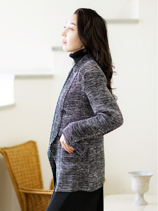 シャトルプリーツ ピークドラペル ダブルブレスト ジャケット ¥19,800 540ポイント還元 お気に入り登録数:9人 01 | 18 ツイード柄(黒白系) ズーム ※選択中のカラーの商品情報が表示されます 杢調ツイード柄(黒白系) 杢調ツイード柄(黒白系) Free/3~31号 ○ カートに入れる 商品説明 気取りなくさらりと羽織るだけでオフィス映えはもちろん、ちょっとお出かけするときも、きちんと見える「スタイリッシュな大人のジャケット」がシャトルプリーツに新登場! トレンドのピークドラペルに、身幅に程良くゆとりを持たせたダブルブレストデザインと、メンズライクなルックスを持ちつつ高め位置でウエストをやや絞った女性らしいシルエットが魅力です。すっきりと端正な印象を演出してくれるロング丈で着こなしやすさはもちろん、シルエットの邪魔にならないよう左右にフラップポケットを配して、かっちりしすぎない大人のモードスタイルに。トップスの上にさらりと羽織るだけで、ラフに前を開けても 締めても 颯爽とした着こなしがサマになります。 ◆着るだけで品よく仕上がるタイムレスなツイード柄のシャトルジャケットはボトムス次第でマニッシュにもエレガントにも演出できる着映え力の高い仕上がり。オン・オフ幅広いシーンで活躍する万能アイテムとして、一着で何通りもの着こなしが楽しめるから、旅行にもぴったり。インナーやアクセサリーを華やかにして大切な日に華を添える大人の「晴れの日」スタイルとしてもきちんと着回して使える上質なベーシックデザインが素敵です。 商品詳細 プリーツの種類:シャトルプリーツ対応サイズ:Free/3~31号重さ:290g生産国:中国素材:ポリエステル100%取り扱い:ドライ商品品番:452-455TW-40-66 商品の特徴 サイズガイドはこちら 【サイズ:平置き寸】 バスト86 肩幅38 袖丈55 着丈62 ※単位:cm 【サイズの詳細:着用寸】 バスト:74~124cm(対応サイズ)・肩幅:39cm・袖丈:57cm・着丈:63cm 【商品の仕様】 ・シャトルプリーツ製品 (縦横斜め全方向に伸縮性があります) ・杢調ツイード柄プリント(黒白系) ・ピークドラペルカラー ・前ボタン、内掛けボタン開き ・ダブルブレスト ・セットインスリーブ ・前2個ポケット付き ・ボックスシルエット ・前下がり裾仕様 ・長め丈(ヒップが半分隠れるくらいの丈感) ・背裏仕立て ◆Coordinate ・オフィスではシンプルなトップスときちんと感のあるパンツを合わせて凜とした佇まいでスタイリッシュに着こなせるスーツスタイルがおすすめ。 ・ロングタイトスカートを合わせて王道をいくクラシカルなレディスタイルはもちろん、エレガントなエスカルゴスカートにあわせれば、ちょっとしたお出かけやデイリーのドレスアップスタイルとして誰よりも素敵に! ・お揃いになるワンピースとも相性が良く、デイリー使いはもちろん、オフィスでさりげなく華やぐスタイリングが叶います。 ・デニムに合わせれば洗練された休日スタイルに。 ・その他にも、相性の良いアイテムを揃えていますので多彩なクロスコーディネートを自由にお楽しみ頂けます。 *セットアップ対応商品は在庫切れの場合がございます。 【商品に対するご注意】 ※着用・お取り扱いの際は、商品についている品質表示とアテンションタグを必ずご確認下さい。 ※ゆとり感には個人差があります。サイズ表を確認の上、ご購入の目安としてご利用ください。 ※プリーツの形状や生地 / 仕様・デザインにより、着用感や実際のサイズ表に若干の誤差が生じる場合がございます。予めご了承ください。 ※単品の画像がない洋服/小物はスタイリングアイテムです。セットではないので、予めご了承下さい。 ※モデル撮影画像は、光の当たり具合で色味が違って見える場合があります。商品の色味はトルソー撮影の画像をご参照ください。 ※メーカー希望小売価格:¥19,800(税込)
