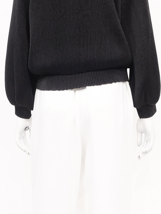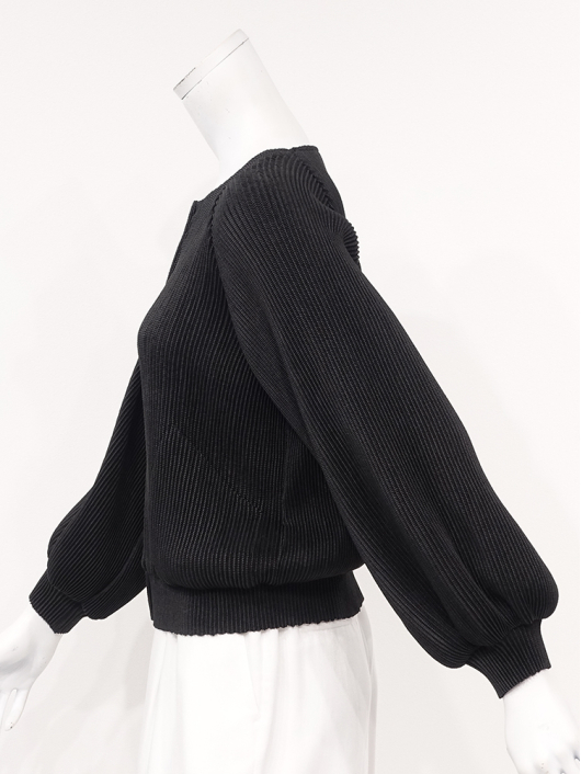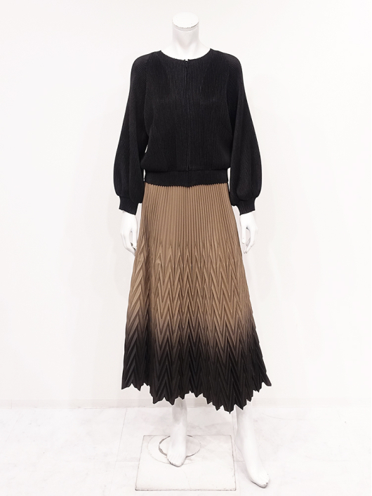 ・裾にプリーツアクセントを効かせたアコーディオンヘリンボーンスカートとのセットアップもステキです。