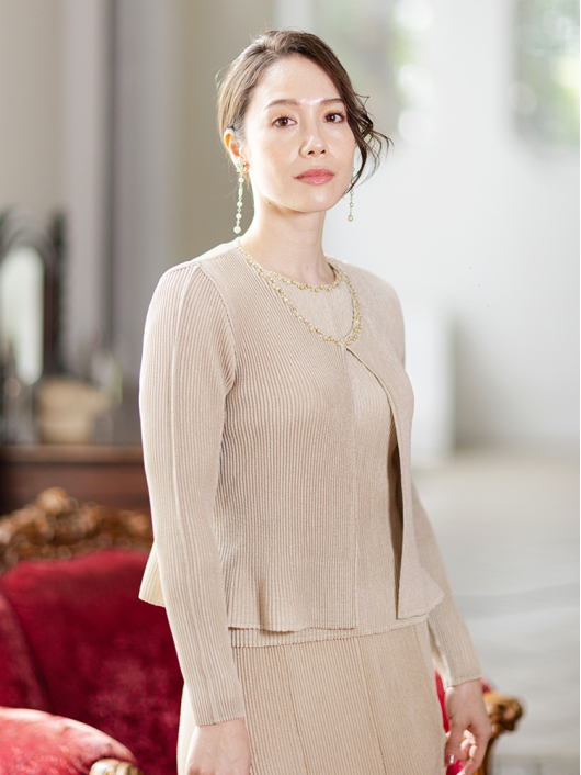 コンパクトな華やかシルエットが美しいきれいめジャケット。ネックラインにキラキラと瞬く刺繍をあしらい、動く度に裾フレアがふわりと揺れる上品な一枚に仕立てました。女性らしいエレガントな雰囲気があるので、お仕事などのデイタイムはもちろん、旅先でのドレスアップや、入学式・卒業式・謝恩会・同窓会・結婚式・披露宴・二次会のお呼ばれなど「晴れの日」スタイルにも最適。