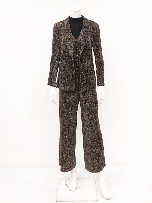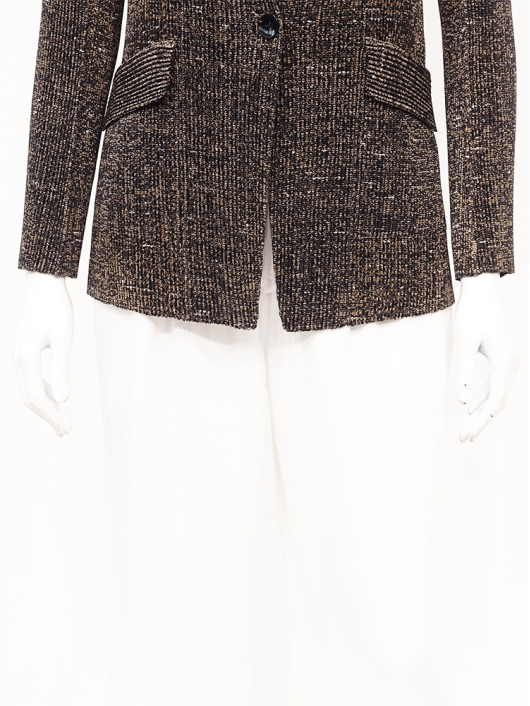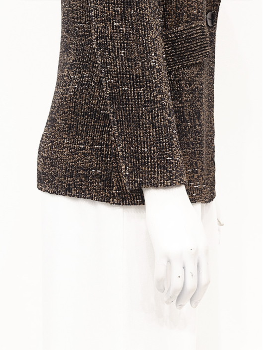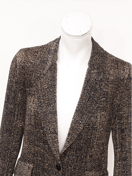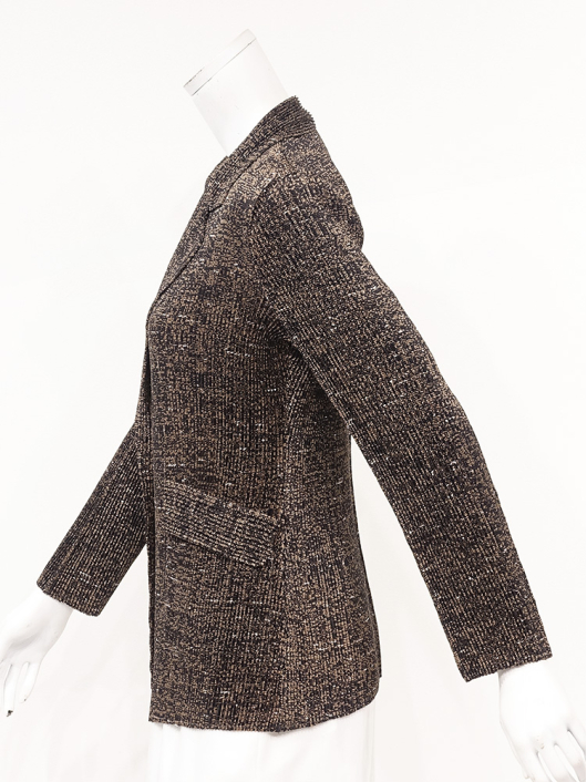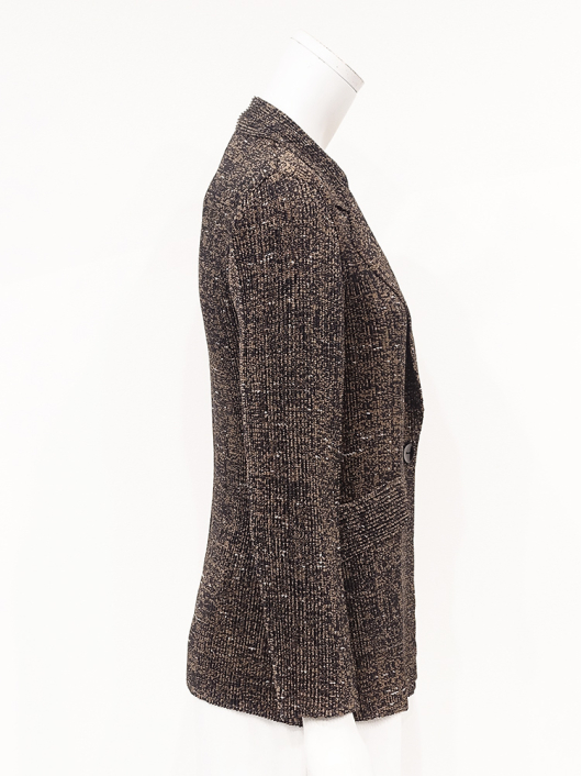 奥行きのある表情が魅力のネップツイードを表現したプリント素材で仕上げたクラシックな雰囲気のテーラードジャケット。