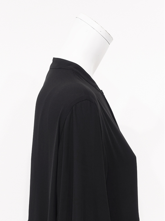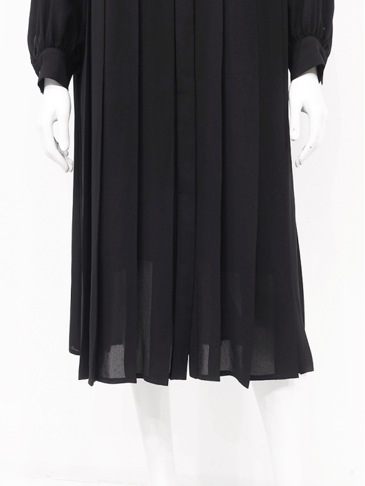 サイドプリーツ切り替え バンドカラーシャツワンピース / 長袖 ¥19,800 1080ポイント還元 お気に入り登録数:4人 01 | 18 ツイード柄(黒白系) ズーム ※選択中のカラーの商品情報が表示されます ブラック ブラック 40 ○ カートに入れる 商品説明 マニッシュなニュアンスに敢えてレディライクな要素を入れたタイムレスなバンドカラーシャツドレス。 ふわりと柔らかくしなやか、上品な透け感を併せ持つレトロな素材感も魅力的。すとんと着るだけでスタイルが完成する大人っぽい雰囲気を邪魔しないよう襟はコンパクトに小さめ仕立て、ドレッシーな印象を纏うことのできるロング丈で女性らしさを意識しています。緻密に計算され切り替えられたサイドプリーツの立体感は、歩くたびに揺れる動きを生みながらも、広がりすぎない甘さを抑えたサックシルエットを設定。体のラインを拾いにくい機能的なデザインでバックスタイルも抜かりのないスタイリングに。 ◆ワンピースとして1枚で着映えて、ボタンを開けて羽織としてトップスやボトムスレイヤードもコーディネートしやすい前開きタイプは、季節もオン・オフも問わないシームレスなブリッジアイテムとして、レイヤードのベースにもなる優秀アイテム。デイリーにはもちろん、お呼ばれや帰省 / 旅先でも大活躍してくれます。 商品詳細 プリーツの種類:サイドプリーツ対応サイズ:Free/3~23号重さ:409g生産国:中国素材:ポリエステル100%取り扱い:ドライ商品品番:452-580-40-09 商品の特徴 サイズガイドはこちら 【サイズ:平置き寸】 バスト108 裄丈76 着丈112 ※単位:cm 【サイズの詳細:着用寸】 バスト:74~108 cm(対応サイズ)・裄丈:76cm・着丈:112cm 【素材・加工】 ・シフォンジョーゼット素材(やや透け感があります) ・前後見頃下サイドプリーツ切り替え仕様(ひだ幅広め) 【商品の仕様】 ・バンドカラー ・前中心比翼ボタン開き ・セットインスリーブ ・長袖 ・袖口カフス仕立てボタン開き ・ロング丈 ・縦長サックシルエット (全身をやわらかく包み込むシルエットは、体のラインを拾いにくい機能的なデザインでスタイリッシュな雰囲気が魅力です。) ◆Coordinate ・そのままサラッと着ても絵になりますが、フロントをオープンにしてトップスの上から羽織っても素敵です。 ・その他にも、相性の良いレイヤリングアイテムを揃えていますので多彩なクロスコーディネートを自由にお楽しみ頂けます。 *セットアップ対応商品は在庫切れの場合がございます。 【商品に対するご注意】 ※着用・お取り扱いの際は、商品についている品質表示とアテンションタグを必ずご確認下さい。 ※ゆとり感には個人差があります。サイズ表を確認の上、ご購入の目安としてご利用ください。 ※プリーツの形状や生地 / 仕様・デザインにより、着用感や実際のサイズ表に若干の誤差が生じる場合がございます。予めご了承ください。 ※単品の画像がない洋服/小物はスタイリングアイテムです。セットではないので、予めご了承下さい。 ※モデル撮影画像は、光の当たり具合で色味が違って見える場合があります。商品の色味はトルソー撮影の画像をご参照ください。 ※メーカー希望小売価格:¥19,800(税込)