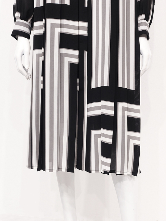 サイドプリーツ切り替え バンドカラーシャツワンピース ¥19,800 1080ポイント還元 お気に入り登録数:6人 01 | 18 ツイード柄(黒白系) ズーム ※選択中のカラーの商品情報が表示されます ぼかしボタニカル柄(ネイビーグリーン系) 幾何学柄(モノトーン系) ぼかしボタニカル柄(ネイビーグリーン系) 40 △ カートに入れる 幾何学柄(モノトーン系) 40 ○ カートに入れる 商品説明 秋らしい深みカラーの印象的なプリントとマニッシュなニュアンスに敢えてレディライクな要素を入れたタイムレスなバンドカラーシャツドレス。 ふわりと柔らかくしなやか、上品な透け感を併せ持つレトロな素材感も魅力的。すとんと着るだけでスタイルが完成する大人っぽい雰囲気を邪魔しないよう襟はコンパクトに小さめ仕立て、ドレッシーな印象を纏うことのできるロング丈で女性らしさを意識しています。緻密に計算され切り替えられたサイドプリーツの立体感は、歩くたびに揺れる動きを生みながらも、広がりすぎない甘さを抑えたサックシルエットを設定。体のラインを拾いにくい機能的なデザインでバックスタイルも抜かりのないスタイリングに。 ◆ワンピースとして1枚で着映えて、ボタンを開けて羽織としてトップスやボトムスレイヤードもコーディネートしやすい前開きタイプは、季節もオン・オフも問わないシームレスなブリッジアイテムとして、レイヤードのベースにもなる優秀アイテム。デイリーにはもちろん、お呼ばれや帰省 / 旅先でも大活躍してくれます。 商品詳細 プリーツの種類:サイドプリーツ対応サイズ:Free/3~23号重さ:234g生産国:中国素材:ポリエステル100%取り扱い:ドライ商品品番:452-580PRT-40-57 商品の特徴 サイズガイドはこちら 【サイズ:平置き寸】 バスト108 裄丈76 着丈112 ※単位:cm 【サイズの詳細:着用寸】 バスト:74~108 cm(対応サイズ)・裄丈:76cm・着丈:112cm 【素材・加工】 ・ぼかしボタニカル柄プリントシフォン素材(肌離れのいいさらっとした感触です / 透け感があります / ネイビーグリーン系) ・前後見頃下サイドプリーツ切り替え仕様(ひだ広め) 【商品の仕様】 ・バンドカラー ・前中心比翼ボタン開き ・セットインスリーブ ・長袖 ・袖口カフス仕立てボタン開き ・ロング丈 ・縦長サックシルエット (全身をやわらかく包み込むシルエットは、体のラインを拾いにくい機能的なデザインでスタイリッシュな雰囲気が魅力です。) ◆Coordinate ・そのままサラッと着ても絵になりますが、フロントをオープンにしてトップスの上から羽織っても素敵です。 ・その他にも、相性の良いレイヤリングアイテムを揃えていますので多彩なクロスコーディネートを自由にお楽しみ頂けます。 *セットアップ対応商品は在庫切れの場合がございます。 【商品に対するご注意】 ※着用・お取り扱いの際は、商品についている品質表示とアテンションタグを必ずご確認下さい。 ※ゆとり感には個人差があります。サイズ表を確認の上、ご購入の目安としてご利用ください。 ※プリーツの形状や生地 / 仕様・デザインにより、着用感や実際のサイズ表に若干の誤差が生じる場合がございます。予めご了承ください。 ※単品の画像がない洋服/小物はスタイリングアイテムです。セットではないので、予めご了承下さい。 ※モデル撮影画像は、光の当たり具合で色味が違って見える場合があります。商品の色味はトルソー撮影の画像をご参照ください。 ※メーカー希望小売価格:¥19,800(税込) 商品説明 そのインパクトに視線を奪われるほど大胆な幾何学柄とマニッシュなニュアンスに敢えてレディライクな要素を入れたタイムレスなバンドカラーシャツドレス。 ふわりと柔らかくしなやか、上品な透け感を併せ持つレトロな素材感も魅力的。すとんと着るだけでスタイルが完成する大人っぽい雰囲気を邪魔しないよう襟はコンパクトに小さめ仕立て、ドレッシーな印象を纏うことのできるロング丈で女性らしさを意識しています。緻密に計算され切り替えられたサイドプリーツの立体感は、歩くたびに揺れる動きを生みながらも、広がりすぎない甘さを抑えたサックシルエットを設定。体のラインを拾いにくい機能的なデザインでバックスタイルも抜かりのないスタイリングに。 ◆ワンピースとして1枚で着映えて、ボタンを開けて羽織としてトップスやボトムスレイヤードもコーディネートしやすい前開きタイプは、季節もオン・オフも問わないシームレスなブリッジアイテムとして、レイヤードのベースにもなる優秀アイテム。デイリーにはもちろん、お呼ばれや帰省 / 旅先でも大活躍してくれます。 商品詳細 プリーツの種類:サイドプリーツ対応サイズ:Free/3~23号重さ:409g生産国:中国素材:ポリエステル100%取り扱い:ドライ商品品番:452-580PRT-40-59 商品の特徴 サイズガイドはこちら 【サイズ:平置き寸】 バスト108 裄丈76 着丈112 ※単位:cm 【サイズの詳細:着用寸】 バスト:74~108 cm(対応サイズ)・裄丈:76cm・着丈:112cm 【素材・加工】 ・総柄幾何学柄プリン