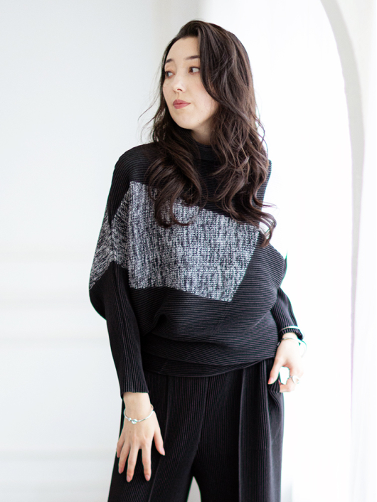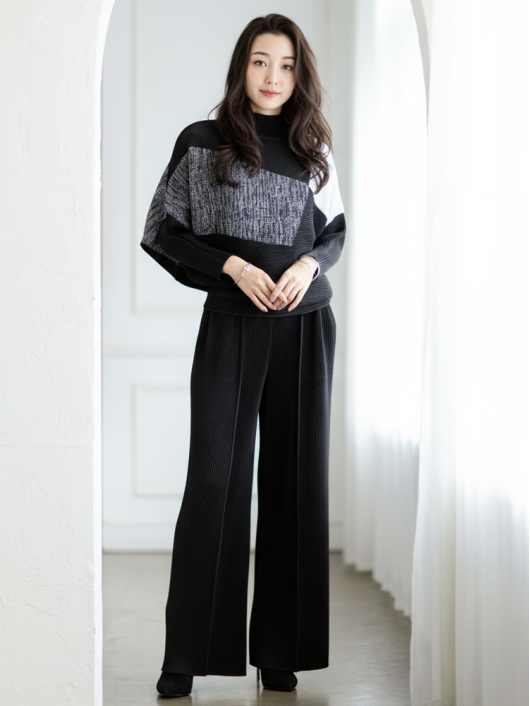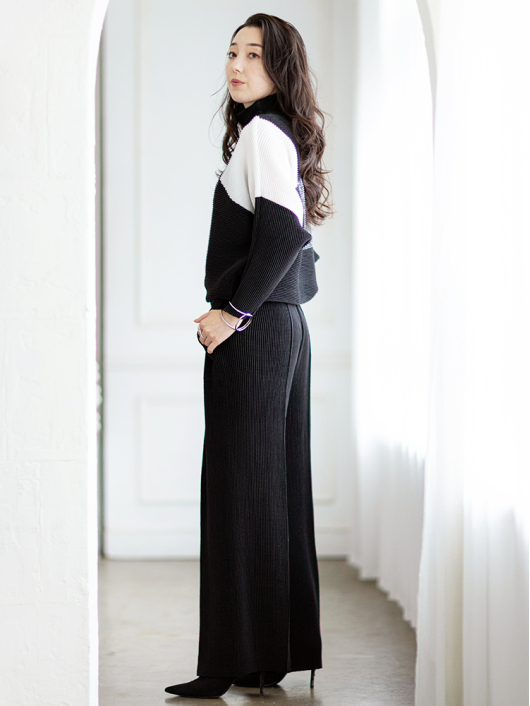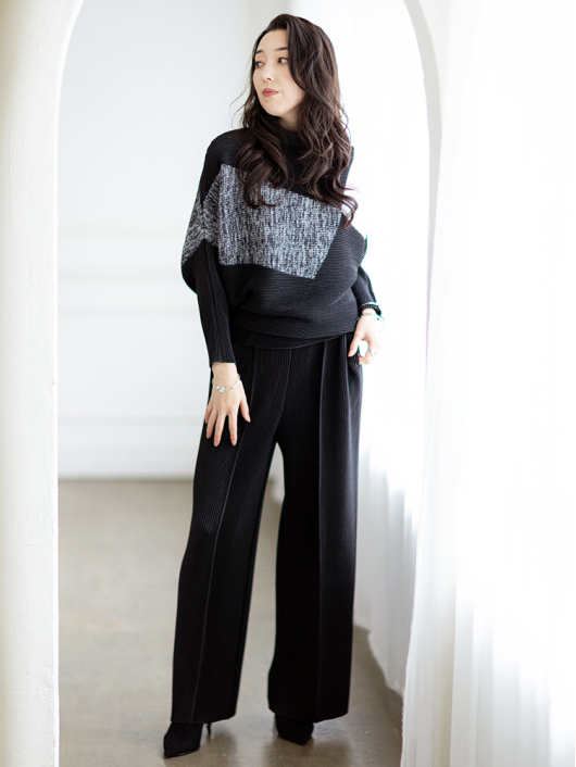 襟元はゆるっと今っぽく、シンプルで美しい抜け感を9分袖でさり気なくプラスして秋冬から春先まで長く愛用できるアイテムに。1枚で着回しの効く2WAYの機能性やシャープさの中にソフトな表情が共存するきれいめ系シルエットも魅力のひとつ。