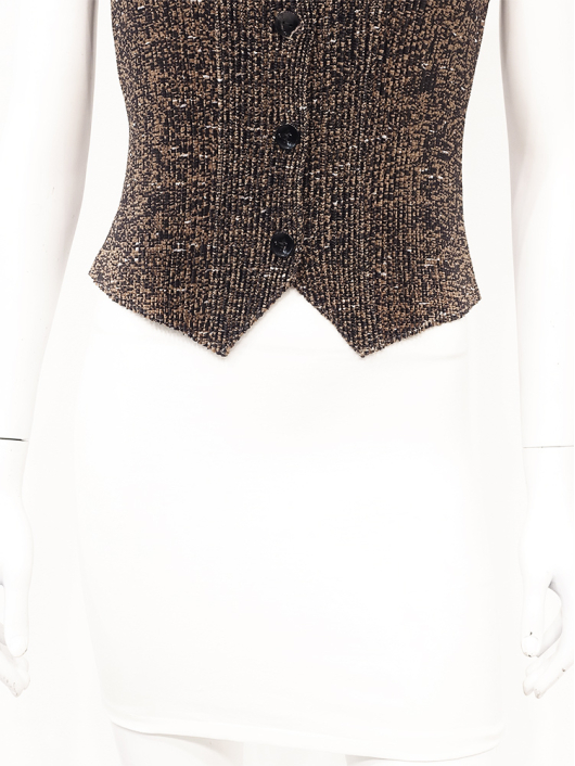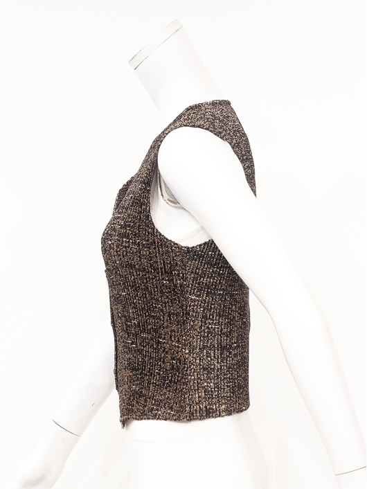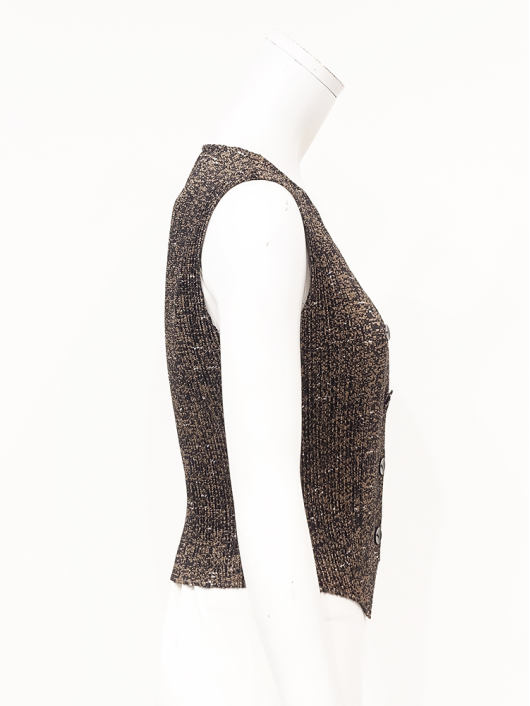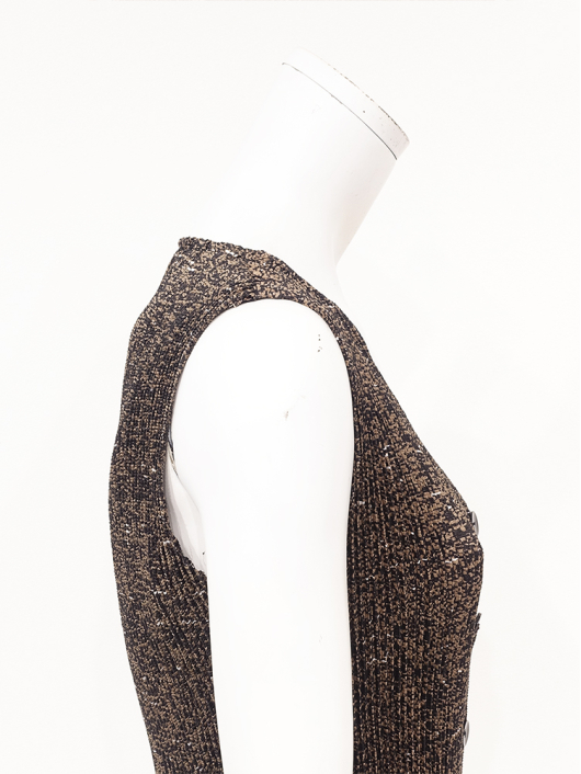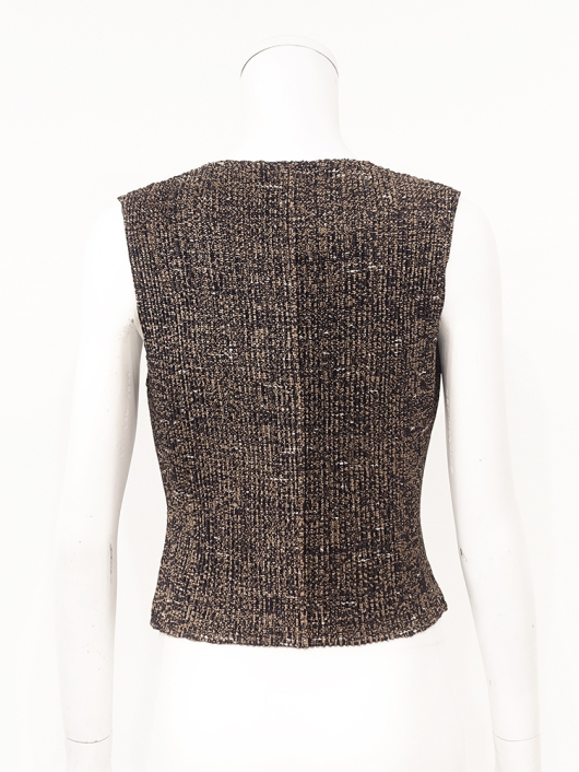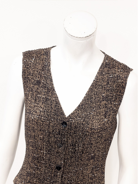 奥行きのある表情が魅力のネップツイードを表現したプリント素材を使用し、メンズライクな印象に仕上げたクラシックな雰囲気のVネックベスト。