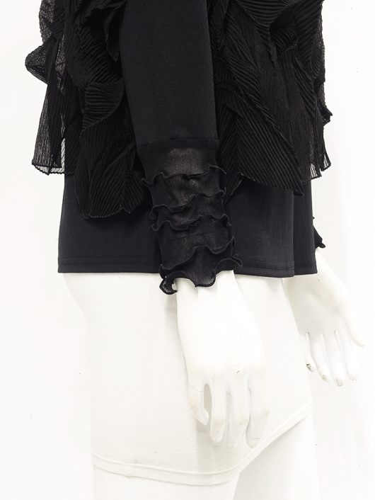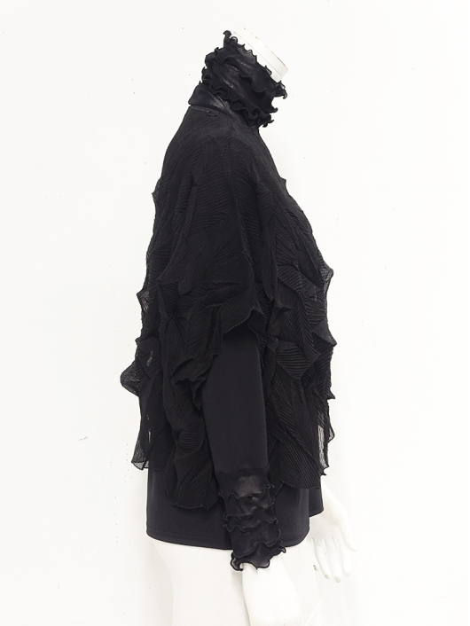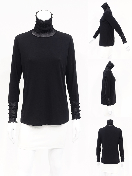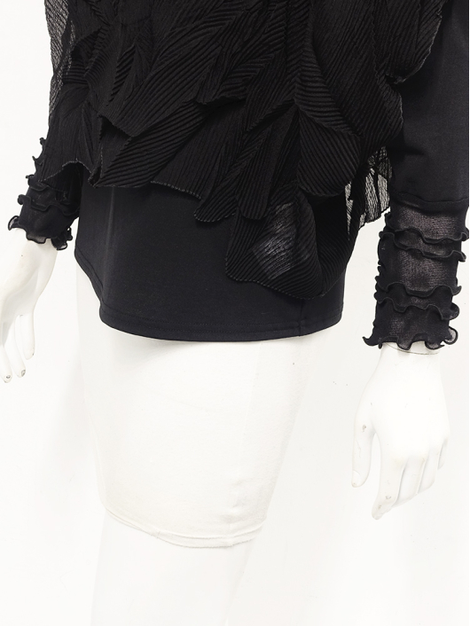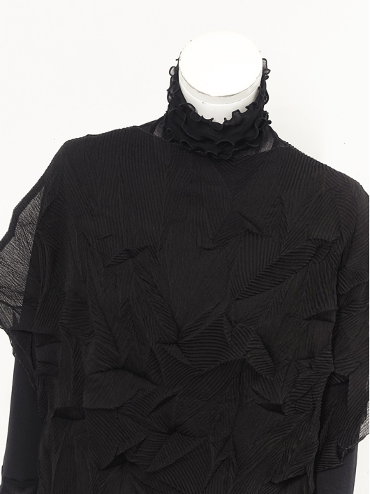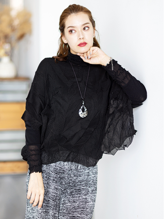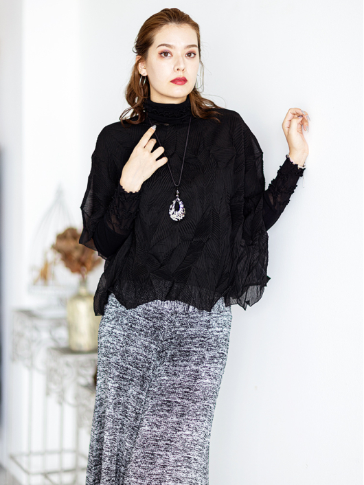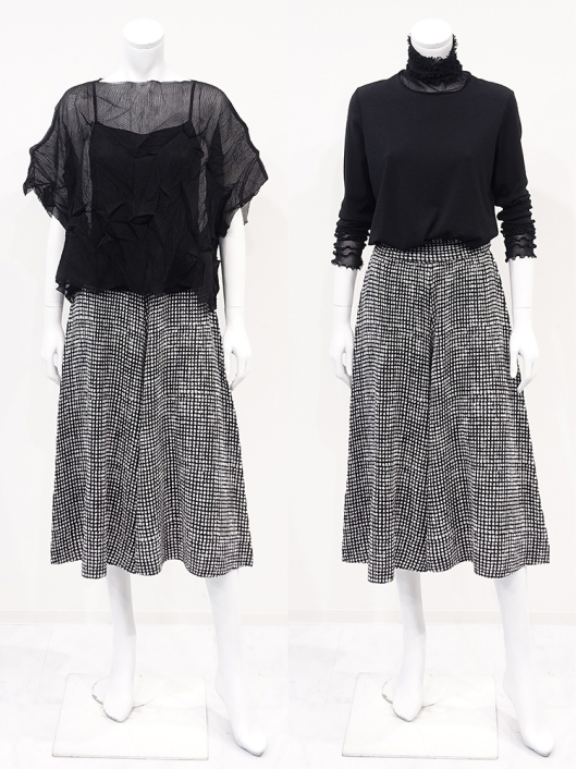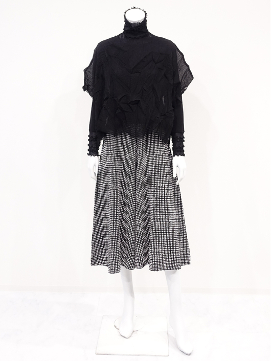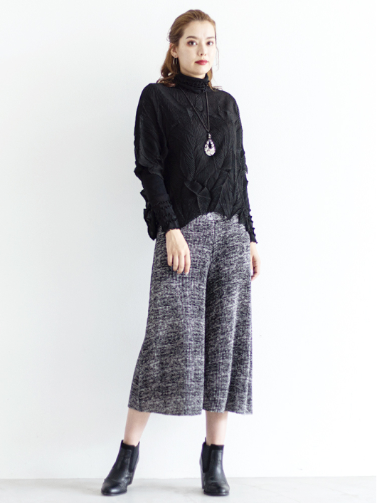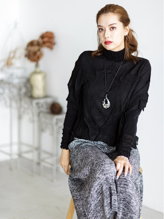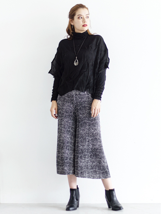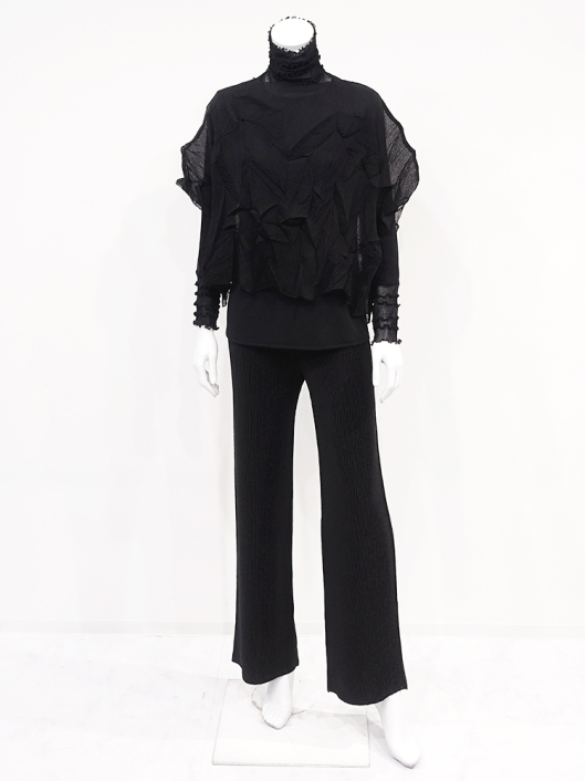 ツイントップス(シフォンプリーツチュニック+プルオーバー) ¥16,500 450ポイント還元 お気に入り登録数:4人 01 | 18 ツイード柄(黒白系) ズーム ※選択中のカラーの商品情報が表示されます ブラック ブラック 40 ○ カートに入れる 商品説明 きれいめにもカジュアルにも取り入れやすい異素材使いのレイヤーニュアンスをモードな雰囲気にまとめた おしゃれなツイントップス。 アウターはエアリーな楊柳シフォン素材。精密でいて縦横無尽に表面変化をつけた楓プリーツをたっぷり施し、くだけすぎず、きちんと着映えして見えるデザイン。インナーのプルオーバーは、衿と袖口で切り替えて魅せるソフトパワーネット素材のメロウフリルデザイン。本体は着心地の良いスムースジャージー仕様。1枚でさらりと着るだけでもサマになり、レイヤードスタイルのインにも使える着まわし力抜群のベーシックアイテムです。 ◆コーディネートに悩んだときにも頼りになるツイントップスは、型にはまらない独創的なエレガンス感も魅力的。それだけで着こなしがサマになる 着映え力の高いデザインなので、華やかなディナーの席にも旅先でのドレスアップにもおすすめの1枚です。 商品詳細 プリーツの種類:楓葉乱プリーツ(アウターのみ)対応サイズ:アウター/3~31号・インナー/40号生産国:中国素材:ポリエステル100%(アウター) 別布:ポリエステル95% ポリウレタン5%(インナー) 別布:ナイロン95% ポリウレタン5%(インナー襟・袖口部分)取り扱い:ドライ 商品品番:452-705-40-09 商品の特徴 サイズガイドはこちら 【サイズ:平置き寸】 アウター 身幅70 裄丈34 着丈44 インナー バスト95 肩幅37 袖丈57 着丈61 ※単位:cm ■サイズの詳細・着用寸:ツイントップスセット(3WAY仕様 / 単品使いも出来ます) アウター:バスト74~124cm(対応サイズ)・裄丈49cm・着丈50cm・重さ74g インナー:バストー・肩幅39cm・袖丈57cm・着丈62cm・重さ180g 【商品の仕様】 ◆アウター デザインチュニック / ブラック色 ・楓葉乱プリーツ製品(縦横無尽に表面変化をつけた楓の葉のような形の立体感を持つ不規則なプリーツ形状も特徴のひとつ / 縦横斜め全方向に伸縮性あり) ・楊柳シフォン素材(透け感があります) ・ボートネックライン ・ドロップショルダー ・オーバーシルエット ・ウエストラインがやや隠れるくらいの丈感 ・着用時は身頃のサイドが自然に下がるイレギュラーヘムライン ・全て手作業で丁寧に仕上げているため、一枚毎に表情が異なります。 ◆インナー プルオーバー / ブラック色 ・異素材切り替えデザイン ・本体スムースジャージー素材 ・衿と袖口はソフトパワーネット素材(メロウフリル仕様 / 透け感があります) ・ハイスタンドネック ・セットインスリーブ ・長袖 ・ヒップが半分隠れるくらいの丈感 ・デザインの特性上、インナーカットソーの対応サイズは40号になりますのでご了承ください。 【商品に対するご注意】 ※着用・お取り扱いの際は、商品についている品質表示とアテンションタグを必ずご確認下さい。 ※ゆとり感には個人差があります。サイズ表を確認の上、ご購入の目安としてご利用ください。 ※素材の特性や仕様 / デザインにより、着用感や実際のサイズ表に若干の誤差が生じる場合がございます。予めご了承ください。 ※単品の画像がない洋服 / 小物はスタイリングアイテムです。セットではないので、予めご了承下さい。 ※モデル撮影画像は、光の当たり具合で色味が違って見える場合があります。商品の色味はトルソー撮影の画像をご参照ください。 ※メーカー希望小売価格:¥16,500(税込)