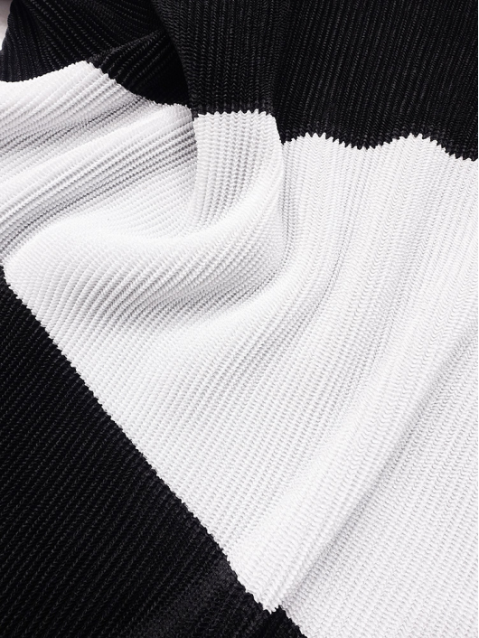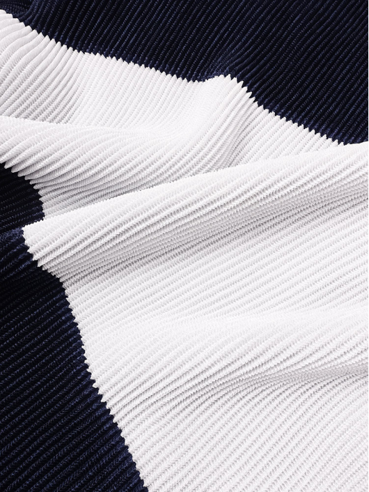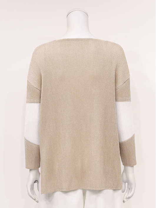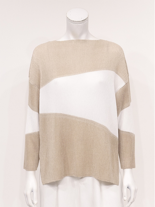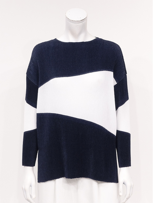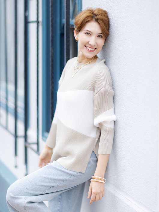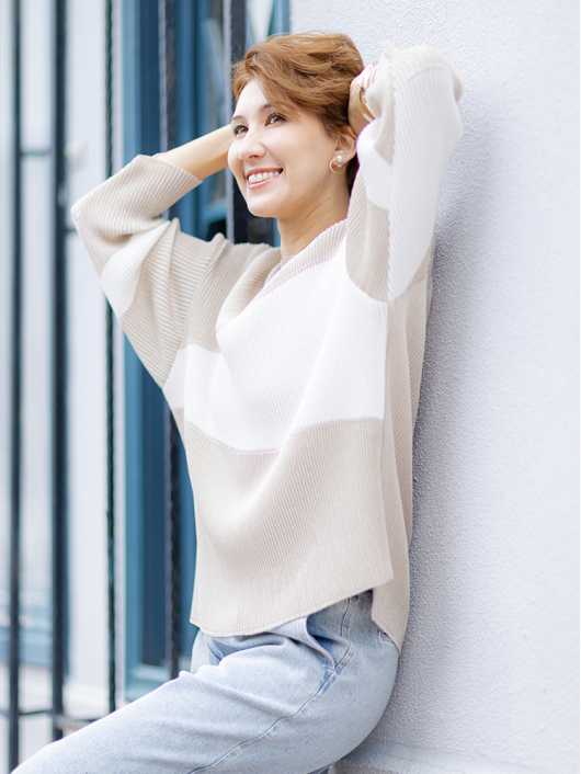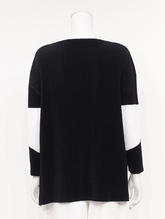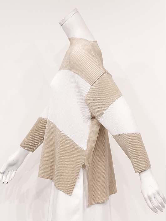 ゆったりとしたドロップショルダーシルエットに、一枚で絵になるモード感を添えたカラーブロックデザインのプルオーバーチュニック。目眩まし効果も狙えるバイカラーの印象的なアクセントや、潔く肌見せをおさえたボートネック、テクニック要らずで上級見えする身体を束縛しないシルエット等、デイテールはシンプルに徹することで着こなしやすい上にスタイルアップが叶う一枚に仕上げています。前後差のある裾のスリットもさりげないポイント。