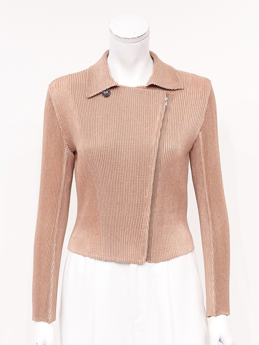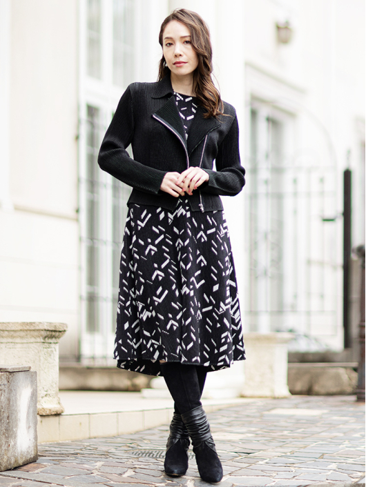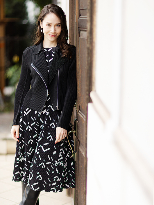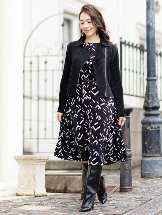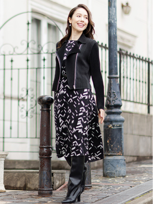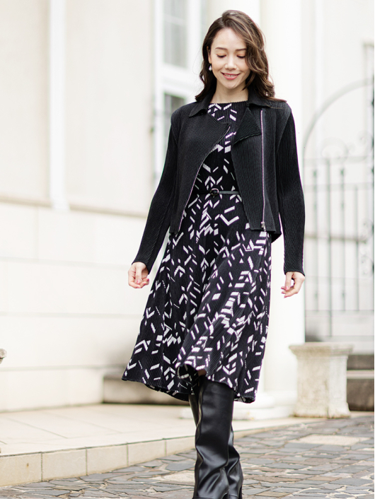 スタイリッシュでいて「さりげなく女っぽい」着こなしが叶うショート丈のライダースジャケット。さらっとシンプルに羽織るだけでもフロントの開閉でも表情の変化が楽しめる1着は、コンパクトに着てこそ格好いいミニマムシルエットだから、柄物のトップスやスカート、プリーツワンピースに合わせた女性らしいコーディネートがおすすめ。自由に着回しの利くデザインなので、今年らしい甘辛ミックスコーデはもちろん、旬のワイドパンツやデニムスタイルとの相性も抜群。日々のスタイリングがおしゃれに決まります!