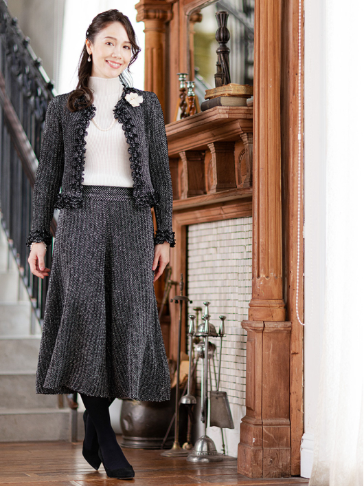 セットアップでそろえればフォーマルな場にも映える「きちんと感」を備えたフェミニンな着こなしに。学校行事や謝恩会・同窓会・結婚式・披露宴・二次会のお呼ばれなど「晴れの日」スタイルにも最適です。