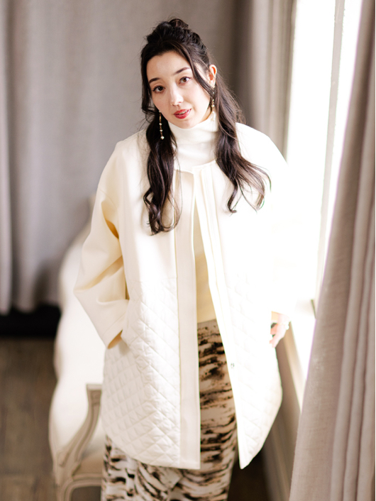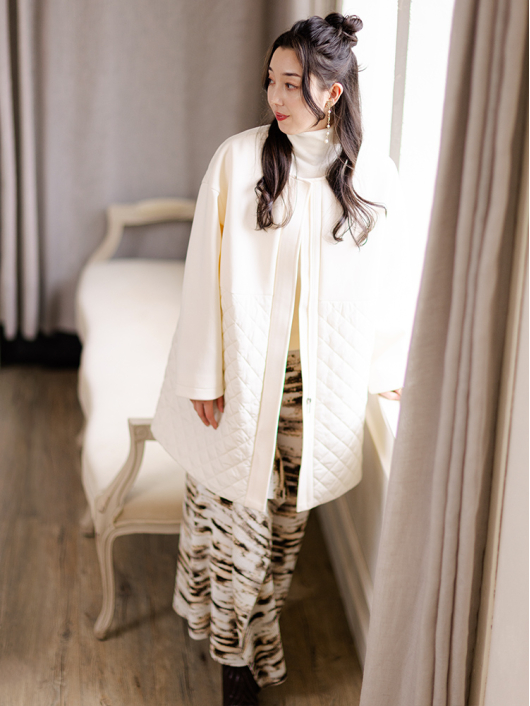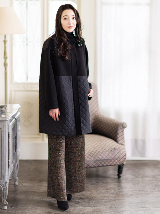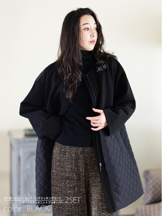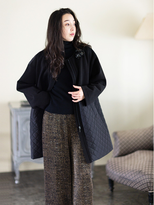 HAPPY BAG(コート+ニット2点セット) 【3点で3000円引き対象外】 ¥16,500 450ポイント還元 お気に入り登録数:0人 01 | 18 ツイード柄(黒白系) ズーム ※選択中のカラーの商品情報が表示されます オフホワイト ブラック オフホワイト 40号 ○ カートに入れる ブラック 40号 ○ カートに入れる 商品説明 商品詳細 対応サイズ:40重さ:962g生産国:中国素材:コート…表地:ポリエステル100% / 別布部分:ポリエステル57% 綿38% ポリウレタン5% / 裏地:ポリエステル100% / 中わた:ポリエステル100% ニット…レーヨン50% ナイロン30% ポリエステル20% 取り扱い:ドライ商品品番:ZZZ-0262-40-01 商品の特徴 サイズガイドはこちら ■サイズの詳細:平置き寸 / 2点セット ・コート バスト120cm・裄丈78cm・着丈82cm・重さ724g ・ニット バスト78cm・肩幅35cm・袖丈57cm・着丈55cm・総丈68cm・重さ238g 【商品の仕様】 ◆コート / 152-873-40-01 / オフホワイト色 ・異素材ドッキングデザイン ・ダイヤ柄キルティング部分布帛素材…左右前下身頃 / 後身頃 ・ダンボールニット素材…左右前上身頃 / 前たて / 前見返し / 袖 ・ノーカラー ・前中心ファスナー開き ・ドロップショルダースリーブ ・前2個ポケット付き ・オーバーサイズシルエット ・膝上ハーフ丈 ◆ニット / 352-191-40-01 / オフホワイト色 ・タートルネック(高さがあるのでくしゅっとしたニュアンスが作れます) ・プルオーバー ・長袖 ・コンパクトなミニマルシルエット ・ヒップにかかるくらいの丈感 【商品に対するご注意】 ※繊細なニット素材や製品の為、引っ掛かりや、糸引きが発生しやすいので着用の際には充分ご注意ください。 ※着用・お取り扱いの際は、商品についている品質表示とアテンションタグを必ずご確認下さい。 ※ゆとり感には個人差があります。サイズ表を確認の上、ご購入の目安としてご利用ください。 ※素材の特性や仕様 / デザインにより、着用感や実際のサイズ表に若干の誤差が生じる場合がございます。予めご了承ください。 ※単品の画像がない洋服 / 小物はスタイリングアイテムです。セットではないので、予めご了承下さい。 ※モデル撮影画像は、光の当たり具合で色味が違って見える場合があります。商品の色味はトルソー撮影の画像をご参照ください。 ※メーカー希望小売価格:¥16,500(税込) 商品説明 商品詳細 対応サイズ:40重さ:971g生産国:中国素材:コート…表地:ポリエステル100% / 別布部分:ポリエステル57% 綿38% ポリウレタン5% / 裏地:ポリエステル100% / 中わた:ポリエステル100% ニット…レーヨン50% ナイロン30% ポリエステル20% 取り扱い:ドライ商品品番:ZZZ-0262-40-09 商品の特徴 サイズガイドはこちら ■サイズの詳細:平置き寸 / 2点セット ・コート バスト120cm・裄丈78cm・着丈82cm・重さ731g ・ニット バスト78cm・肩幅35cm・袖丈57cm・着丈53cm・総丈66cm・重さ240g 【商品の仕様】 ◆コート / 152-873-40-09 / ブラック色 ・異素材ドッキングデザイン ・ダイヤ柄キルティング部分布帛素材…左右前下身頃 / 後身頃 ・ダンボールニット素材…左右前上身頃 / 前たて / 前見返し / 袖 ・ノーカラー ・前中心ファスナー開き ・ドロップショルダースリーブ ・前2個ポケット付き ・オーバーサイズシルエット ・膝上ハーフ丈 ◆ニット / 352-191-40-09 / ブラック色 ・タートルネック(高さがあるのでくしゅっとしたニュアンスが作れます) ・プルオーバー ・長袖 ・コンパクトなミニマルシルエット ・ヒップにかかるくらいの丈感 【商品に対するご注意】 ※繊細なニット素材や製品の為、引っ掛かりや、糸引きが発生しやすいので着用の際には充分ご注意ください。 ※着用・お取り扱いの際は、商品についている品質表示とアテンションタグを必ずご確認下さい。 ※ゆとり感には個人差があります。サイズ表を確認の上、ご購入の目安としてご利用ください。 ※素材の特性や仕様 / デザインにより、着用感や実際のサイズ表に若干の誤差が生じる場合がございます。予めご了承ください。 ※単品の画像がない洋服 / 小物はスタイリングアイテムです。セットではないので、予めご了承下さい。 ※モデル撮影画像は、光の当たり具合で色味が違って見える場合があります。商品の色味はトルソー撮影の画像をご参照ください。 ※メーカー希望小売価格:¥16,500(税込)